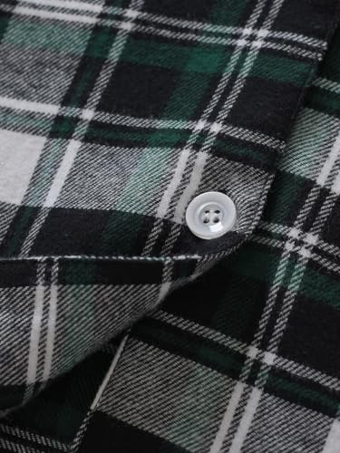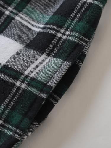 Latuza Women's Tall Flannel Pajama Set Extra Long Button Up Top Pants Pj Set S Black Green