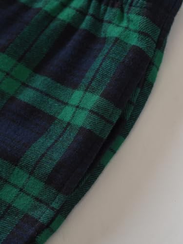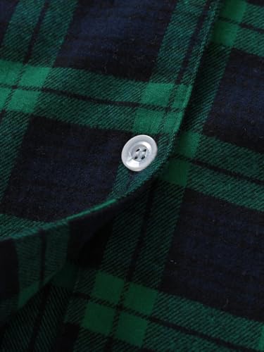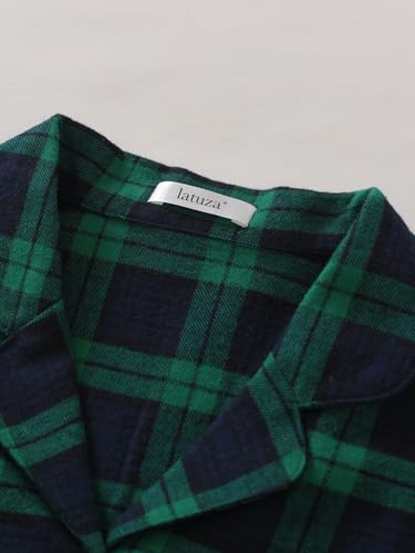 Latuza Women's Tall Flannel Pajama Set Extra Long Button Up Top Pants Pj Set S Navy Green