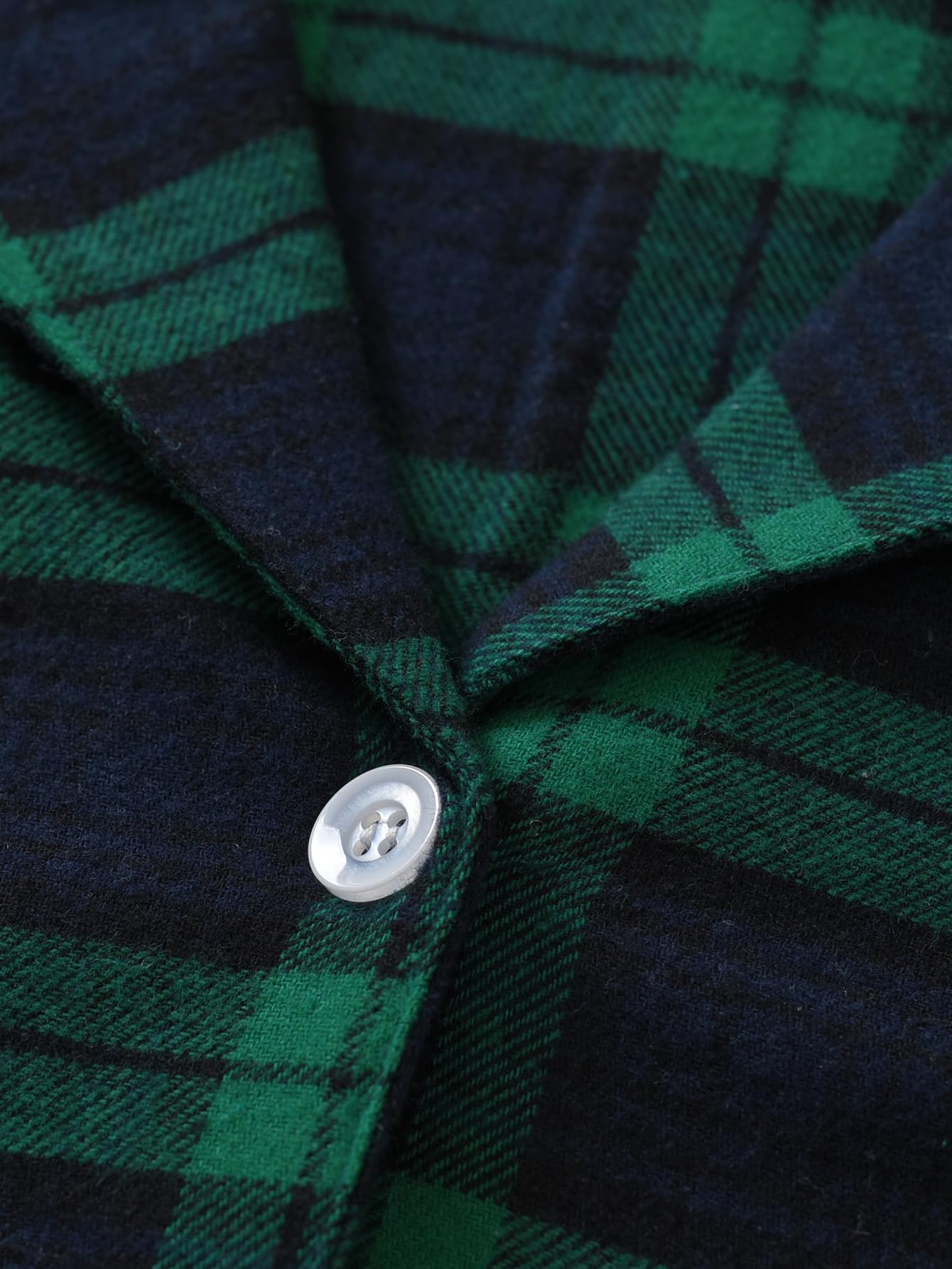 Latuza Women's Tall Flannel Pajama Set Extra Long Button Up Top Pants Pj Set XL Navy Green