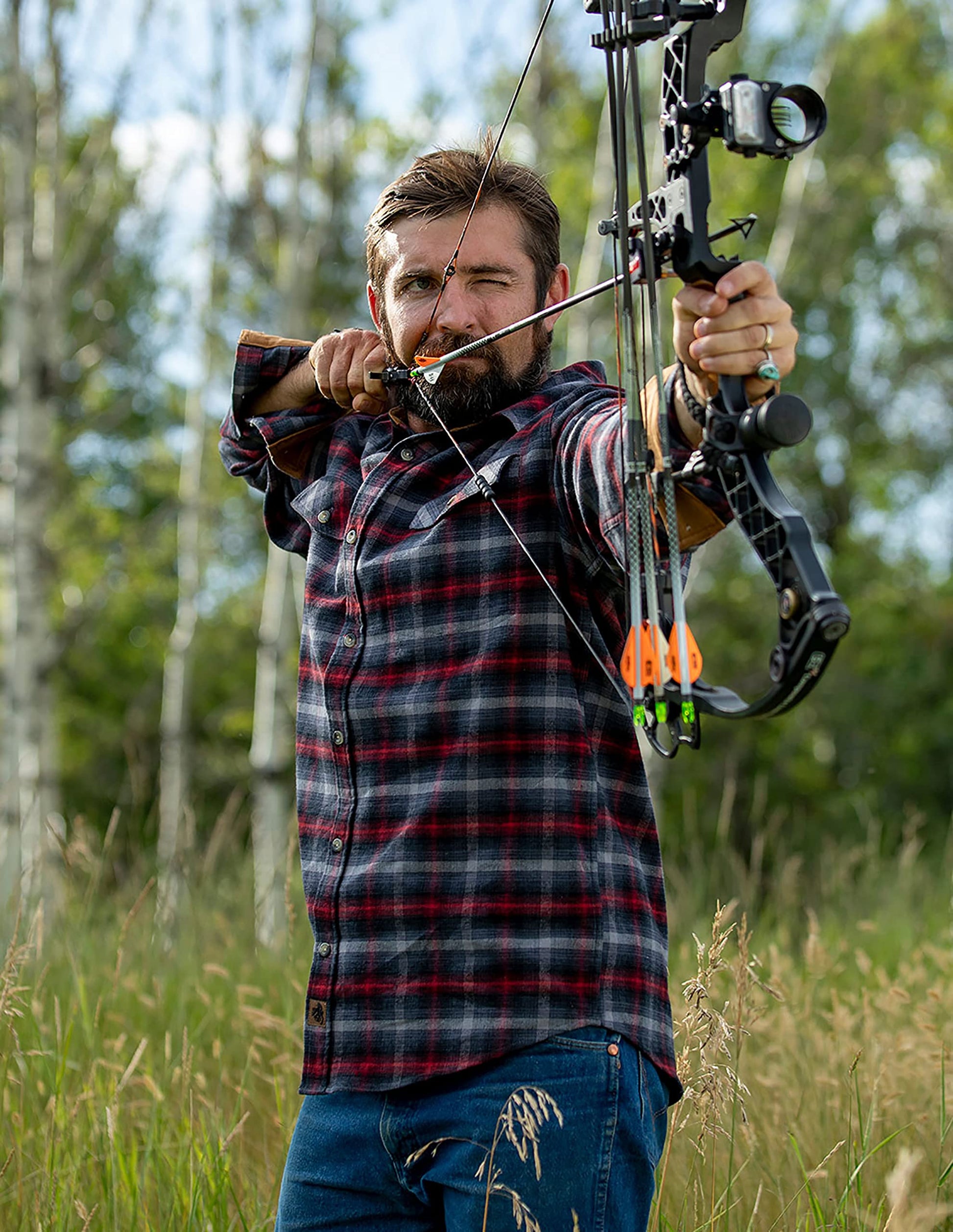 The Men's Legendary Flannel Shirt is the ultimate shirt for all your indoor and outdoor activities. We engineered it with the same relaxed fit as our other shirts, then raised the back yoke and added stretch to achieve a custom fit that gives you full range of motion without any tugging or pulling... even at full draw! Additional features include convertible pocket flaps that can be buttoned or tucked in, and super soft suede knit lined collar and cuffs. If you like our Buck Camp Flannel Shirt , you're going to love the new Legendary Flannel!
