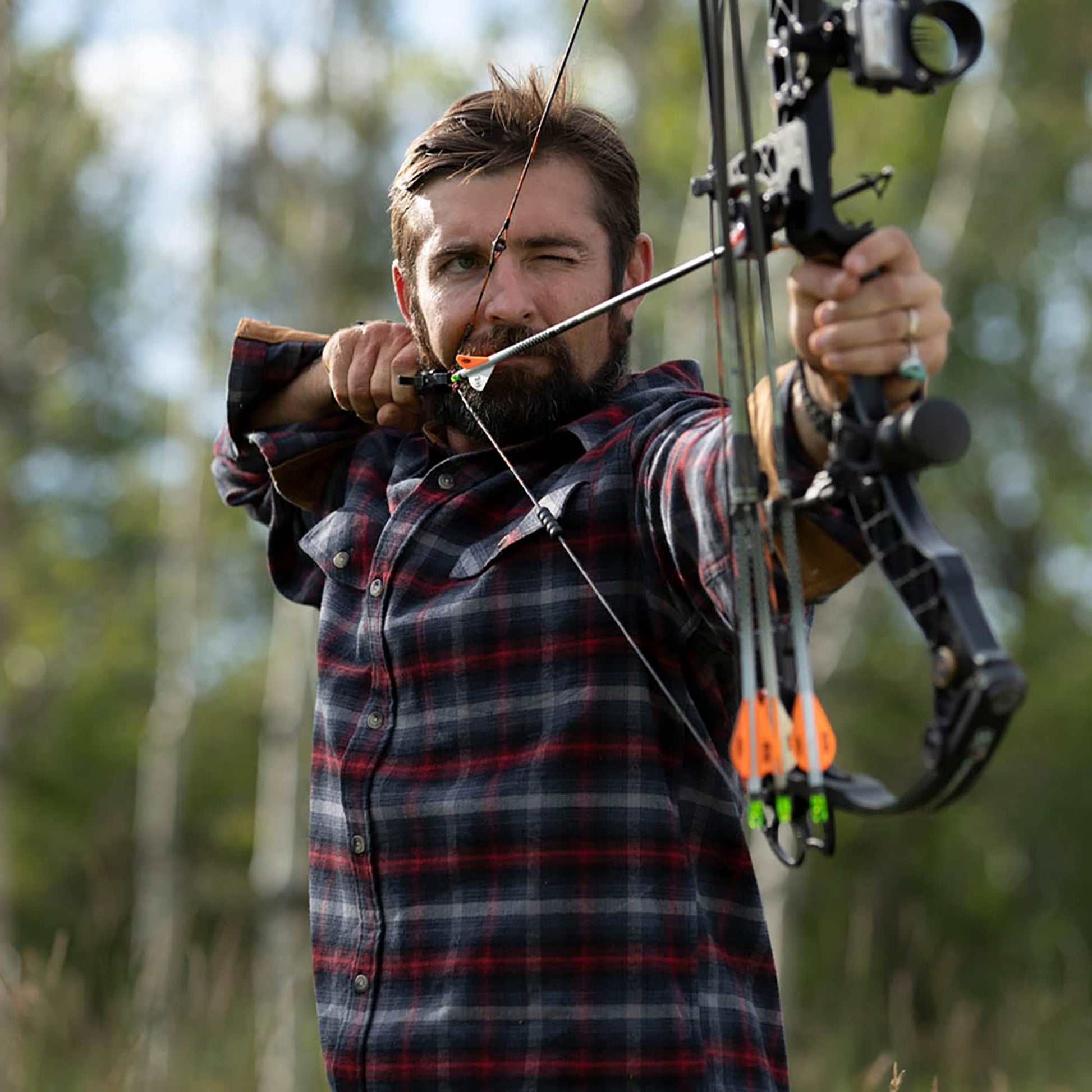 The Men's Legendary Flannel Shirt is the ultimate shirt for all your indoor and outdoor activities. We engineered it with the same relaxed fit as our other shirts, then raised the back yoke and added stretch to achieve a custom fit that gives you full range of motion without any tugging or pulling... even at full draw! Additional features include convertible pocket flaps that can be buttoned or tucked in, and super soft suede knit lined collar and cuffs. If you like our Buck Camp Flannel Shirt , you're going to love the new Legendary Flannel!