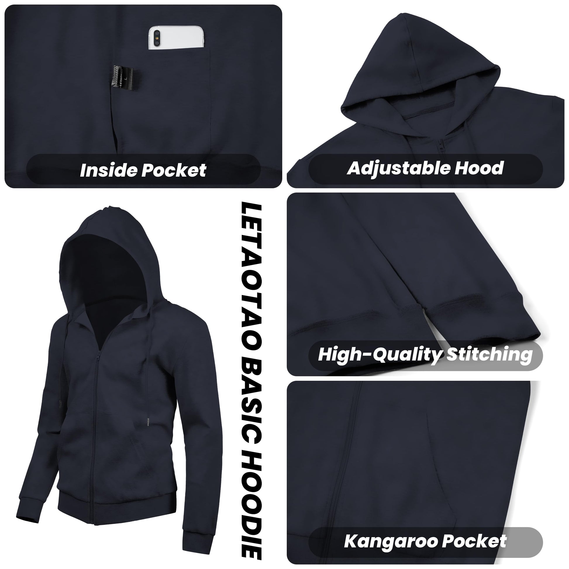 - LIGHTWEIGHT COMFORT: LETAOTAO men's zip up hoodie made with double-sided fabric that's lightweight, soft, and comfortable for all-day wear.