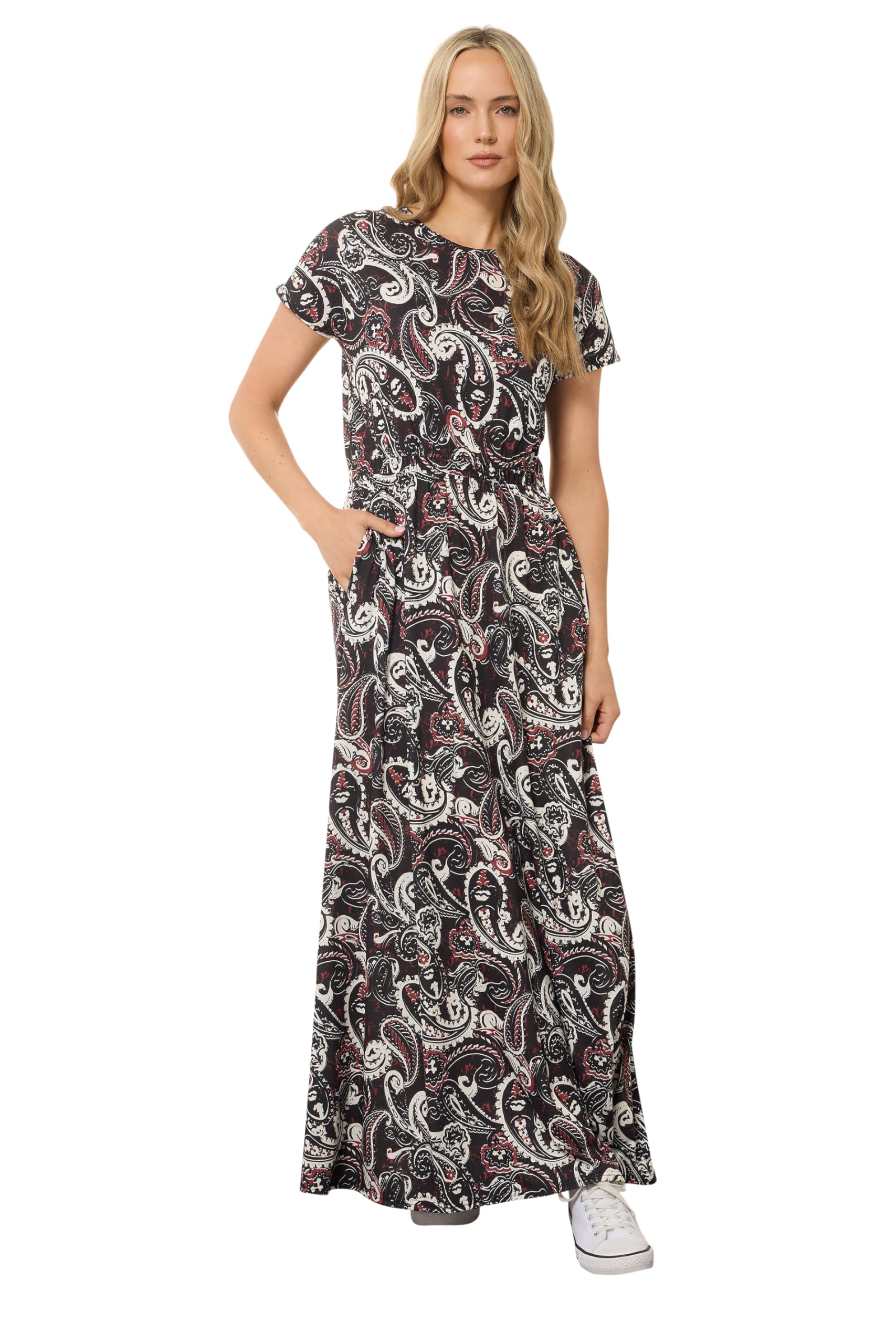 - Discover a new summer casual with this paisley dress. Made from a soft jersey fabric, it features short sleeves, a shirred waistband and completes at a maxi length. Wear with Sneakers for never ending everyday wear!
