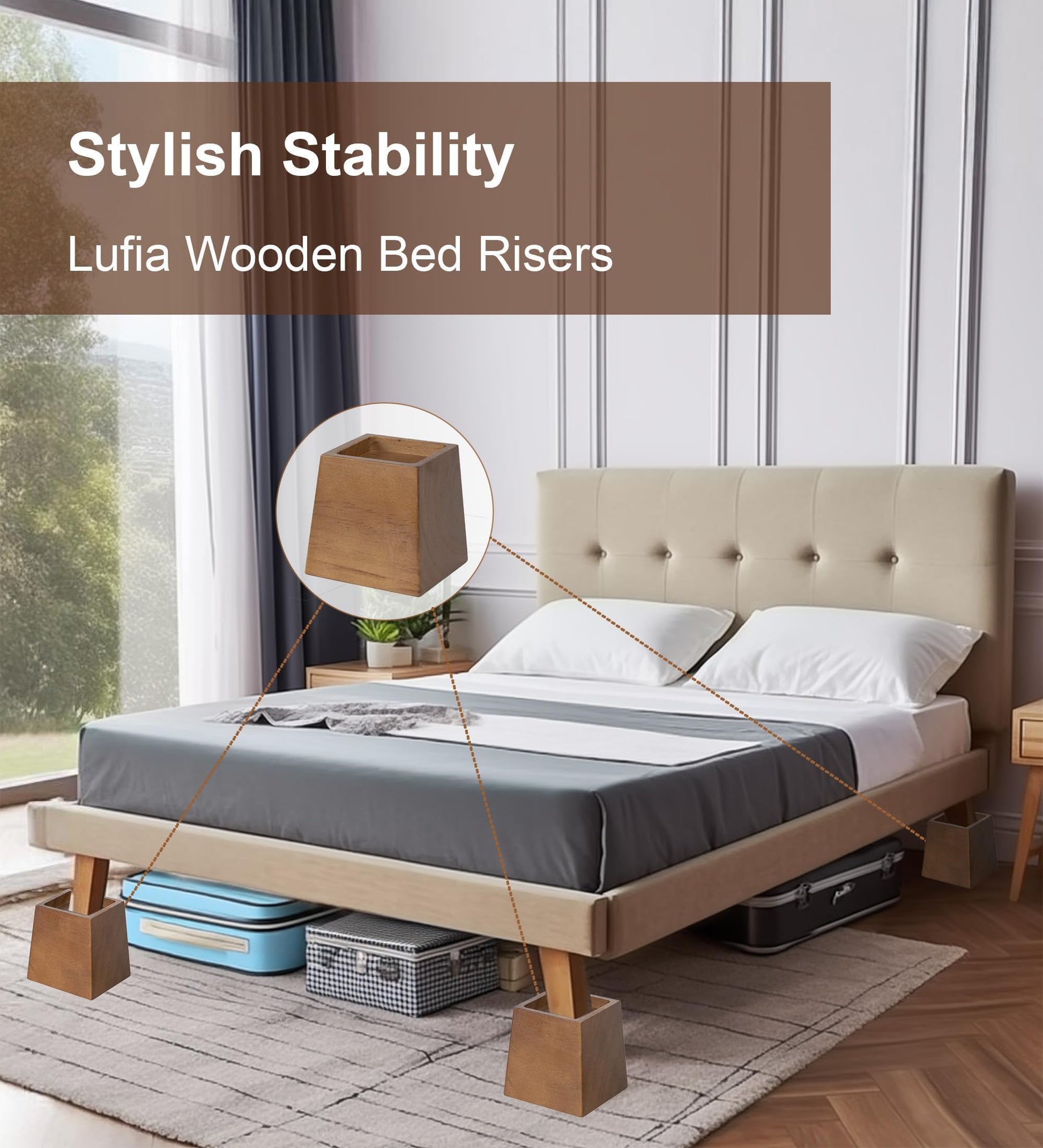 - PREMIUM MATERIAL: Our furniture risers are made of high-quality pine wood, known for its durability and strength. Unlike plastic risers that are prone to cracking and breaking, these wooden risers are durable and provide long-term stability and support for your furniture.