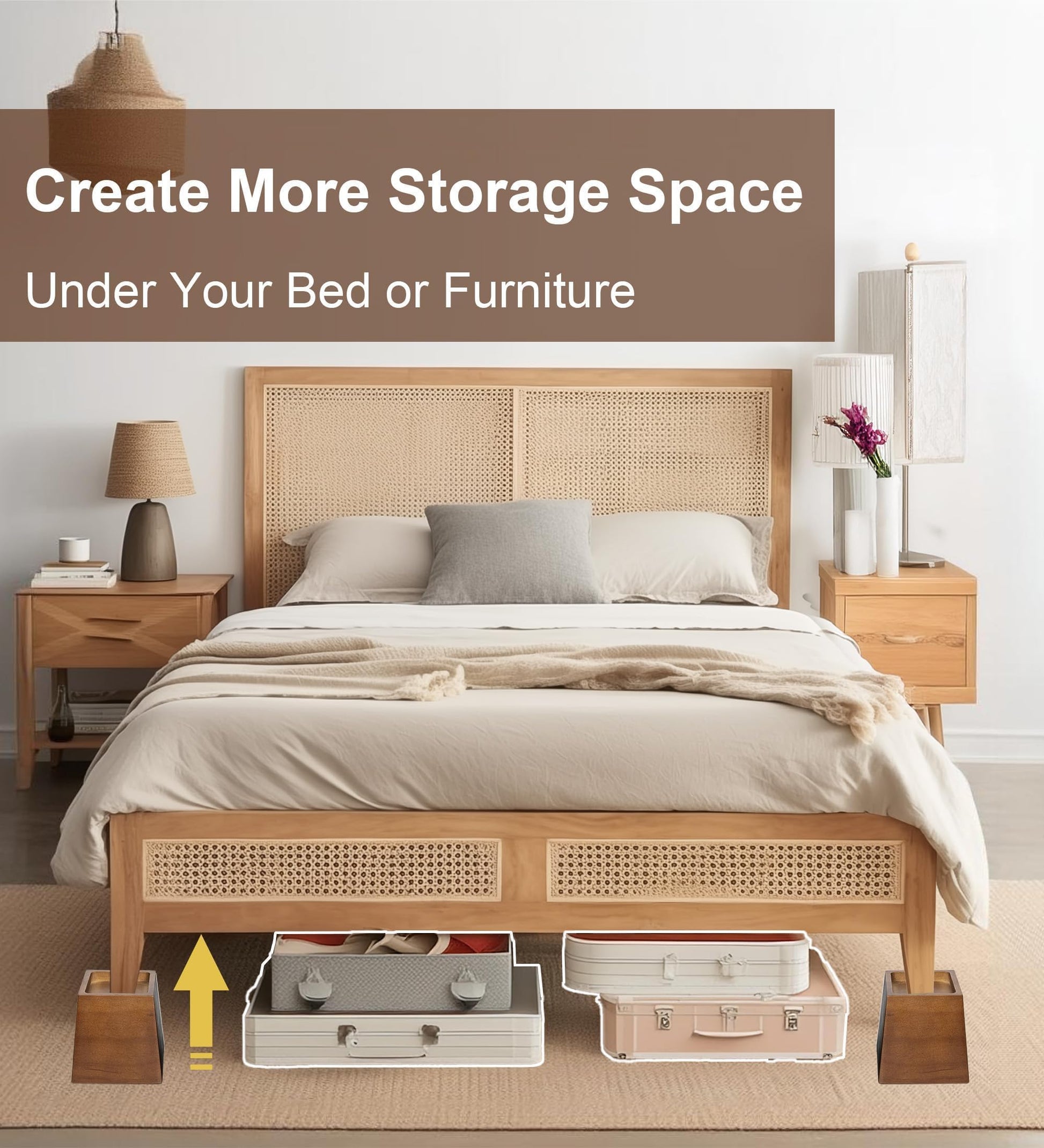 - PRACTICAL AND FUNCTIONAL: Not only do these risers elevate your furniture, they also provide additional storage underneath. Whether you need extra space for storage bins, cleaning supplies, or just want to keep your belongings out of sight, these risers are a practical solution.
