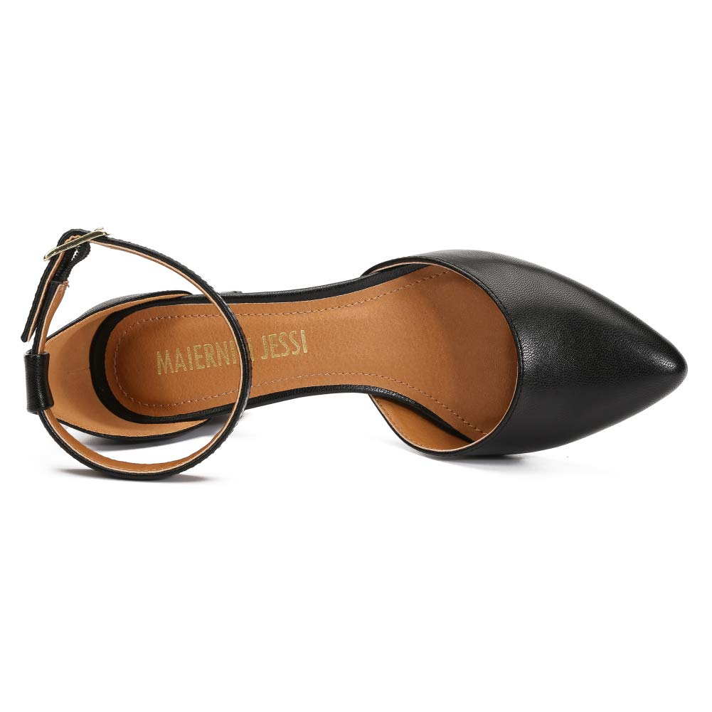 MAIERNISI JESSI Unisex Men's Women's Pumps Ankle Strap D-Orsay Pointed Toe Chunky Heel Matt Black EU45 - US 13 Women/11.5 Men