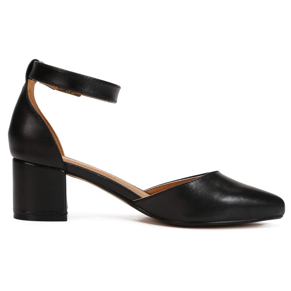 MAIERNISI JESSI Unisex Men's Women's Pumps Ankle Strap D-Orsay Pointed Toe Chunky Heel Matt Black EU46 - US 14 Women/12.5 Men