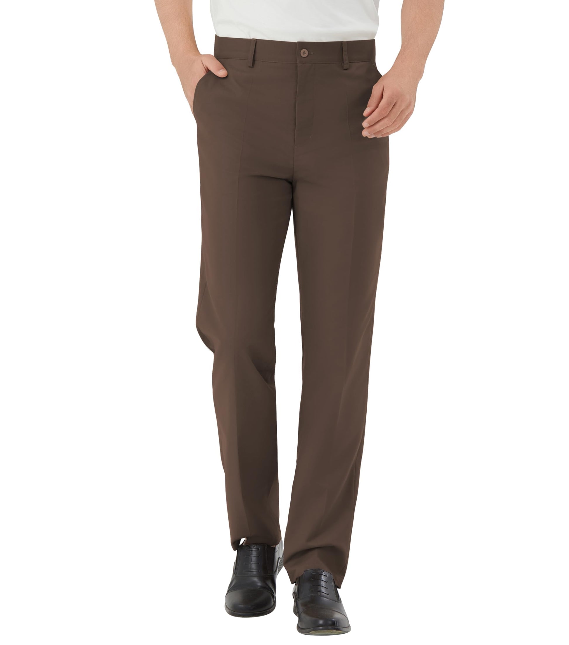 Men's Tall Classic Fit Flex Flat Front Dress Pants Formal Pants for Business & Office Brown