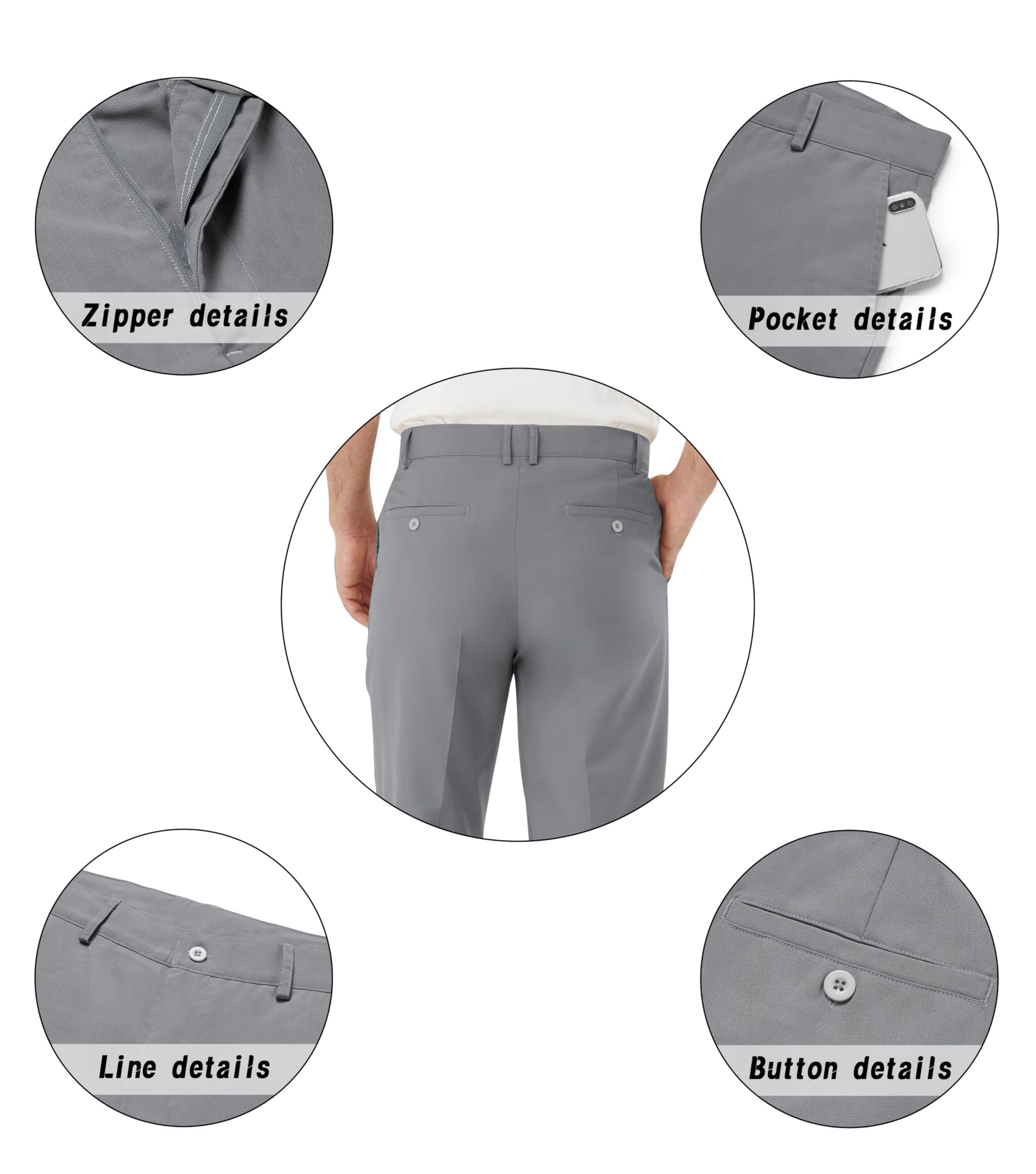 Men's Tall Classic Fit Flex Flat Front Dress Pants Formal Pants for Business & Office Grey