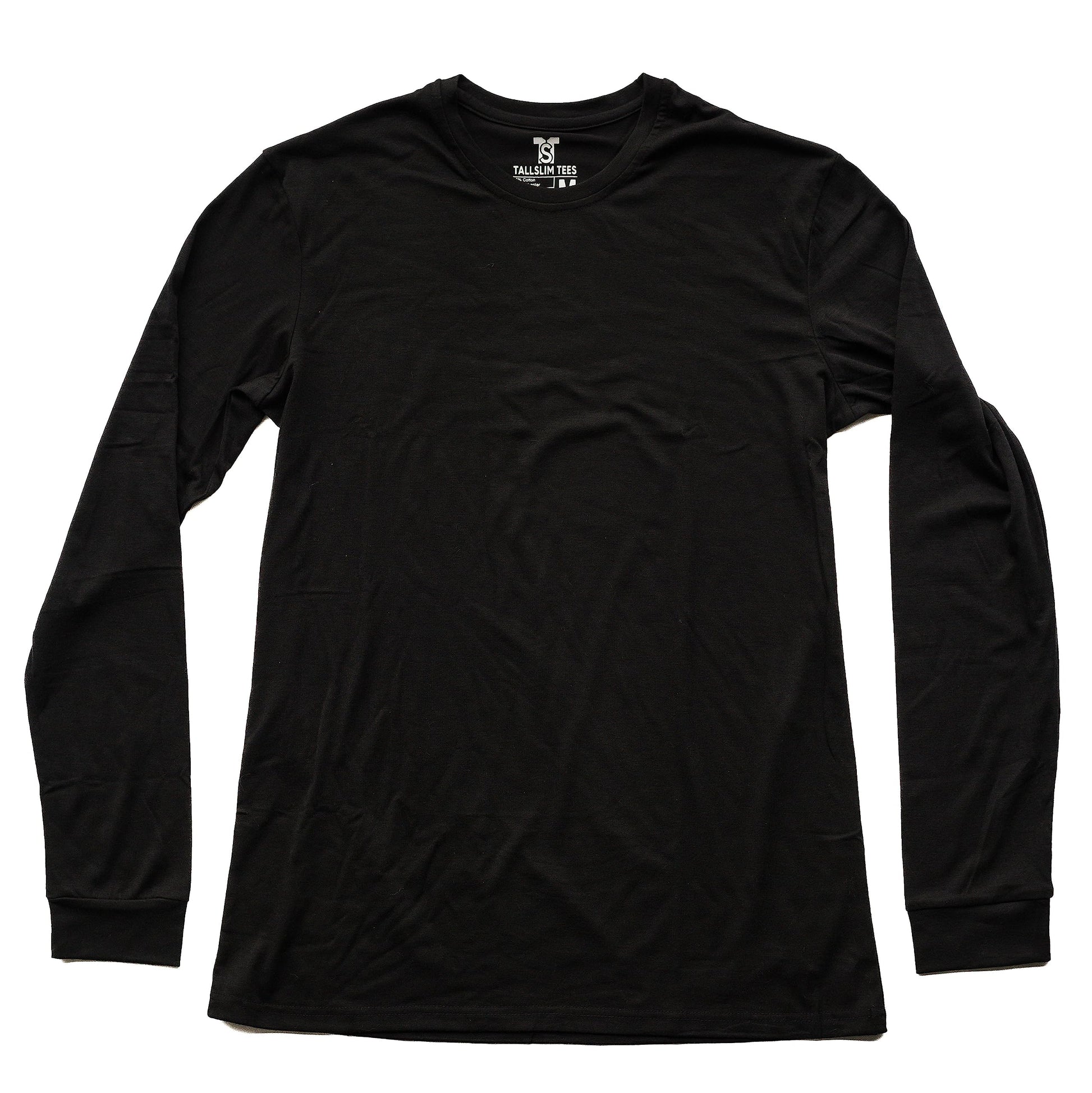 Men's Tall Slim-Fit Long Sleeve Crewneck T-Shirt, Super Soft Poly Blend Long Tee (Tall, Small, Black)