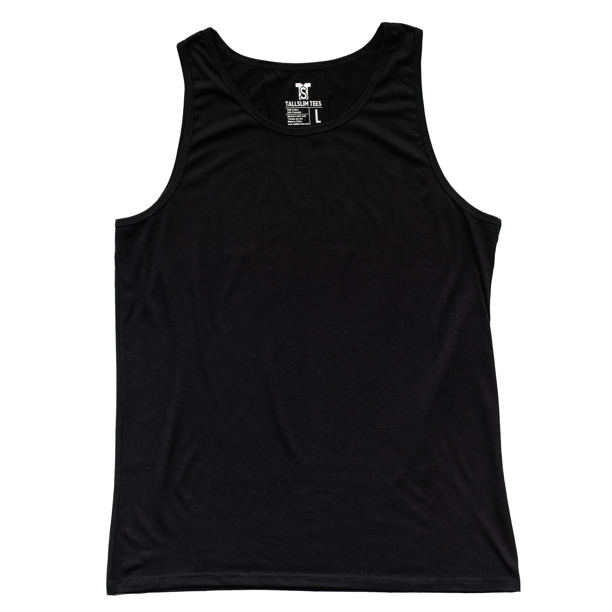 Men's Tall Slim-Fit Orginal Tank Top Shirt, Soft Polyester Blend Long Tee (Tall, Large, Black)