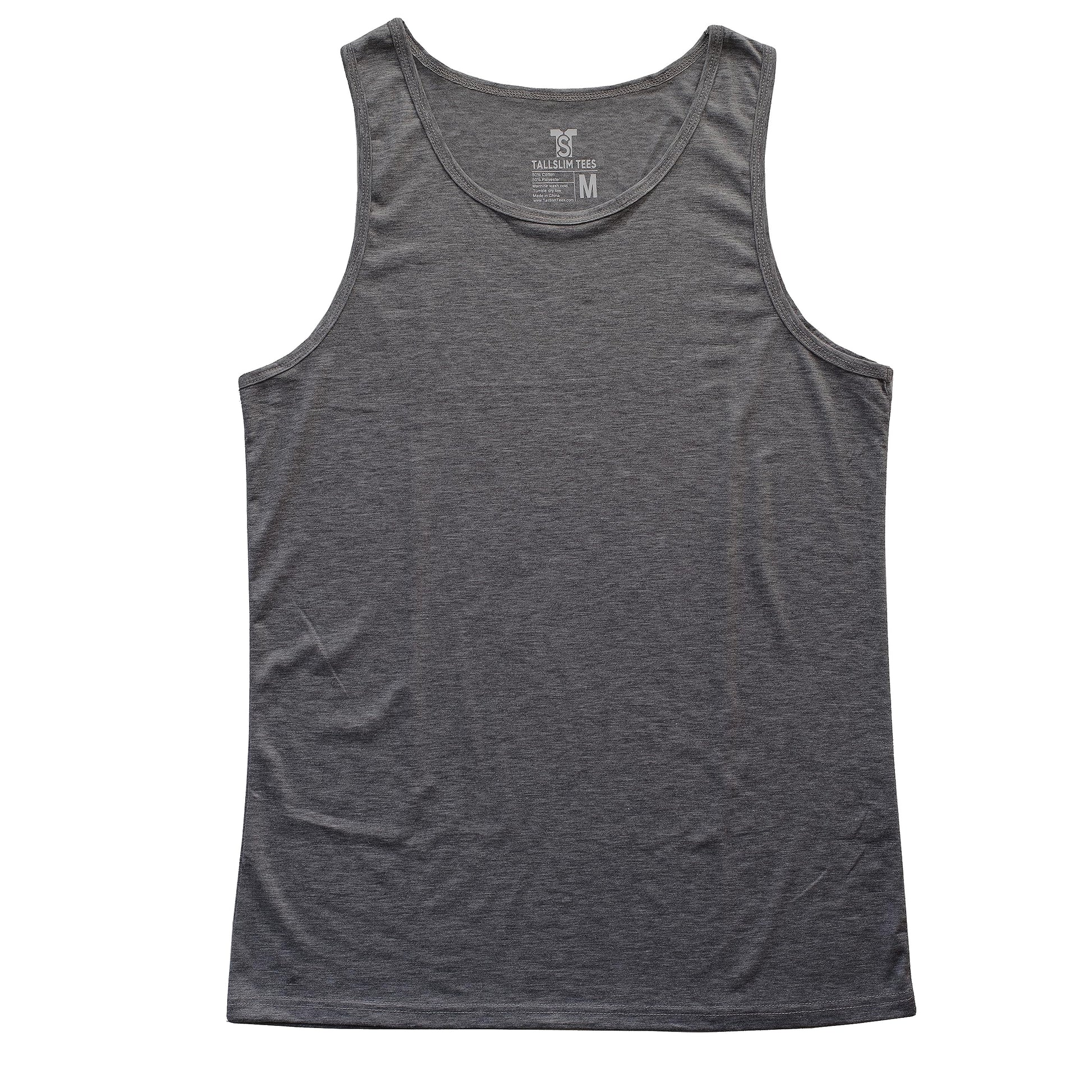 Men's Tall Slim-Fit Orginal Tank Top Shirt, Soft Polyester Blend Long Tee (Tall, Large, Gray)