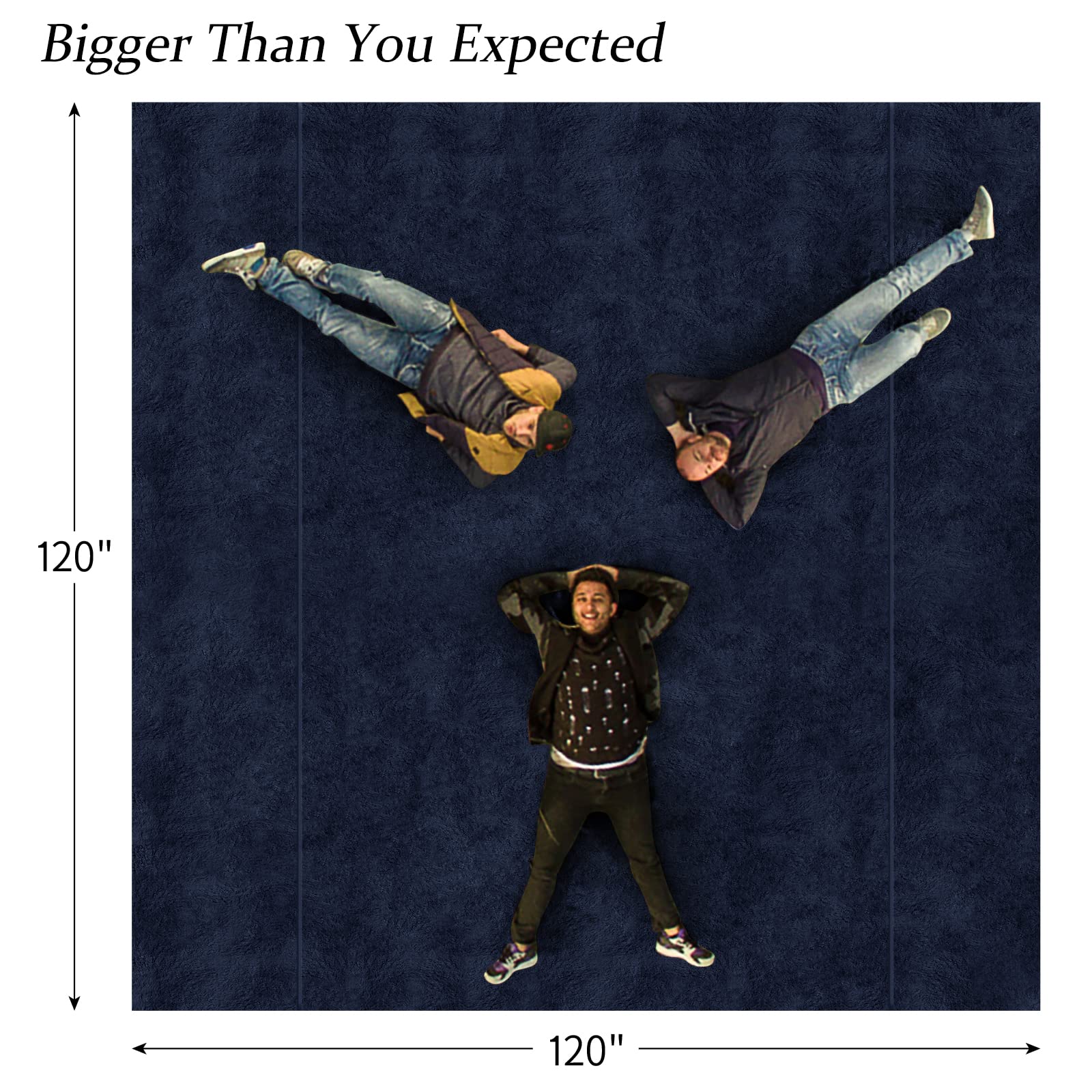 Oversized Blanket 120x120 Inches, Giant Huge Companion for Bed, Sofa, Travel and Camping, Extra Large Big Soft Blanket Fits The Whole Family and Outdoor Campaign, Navy