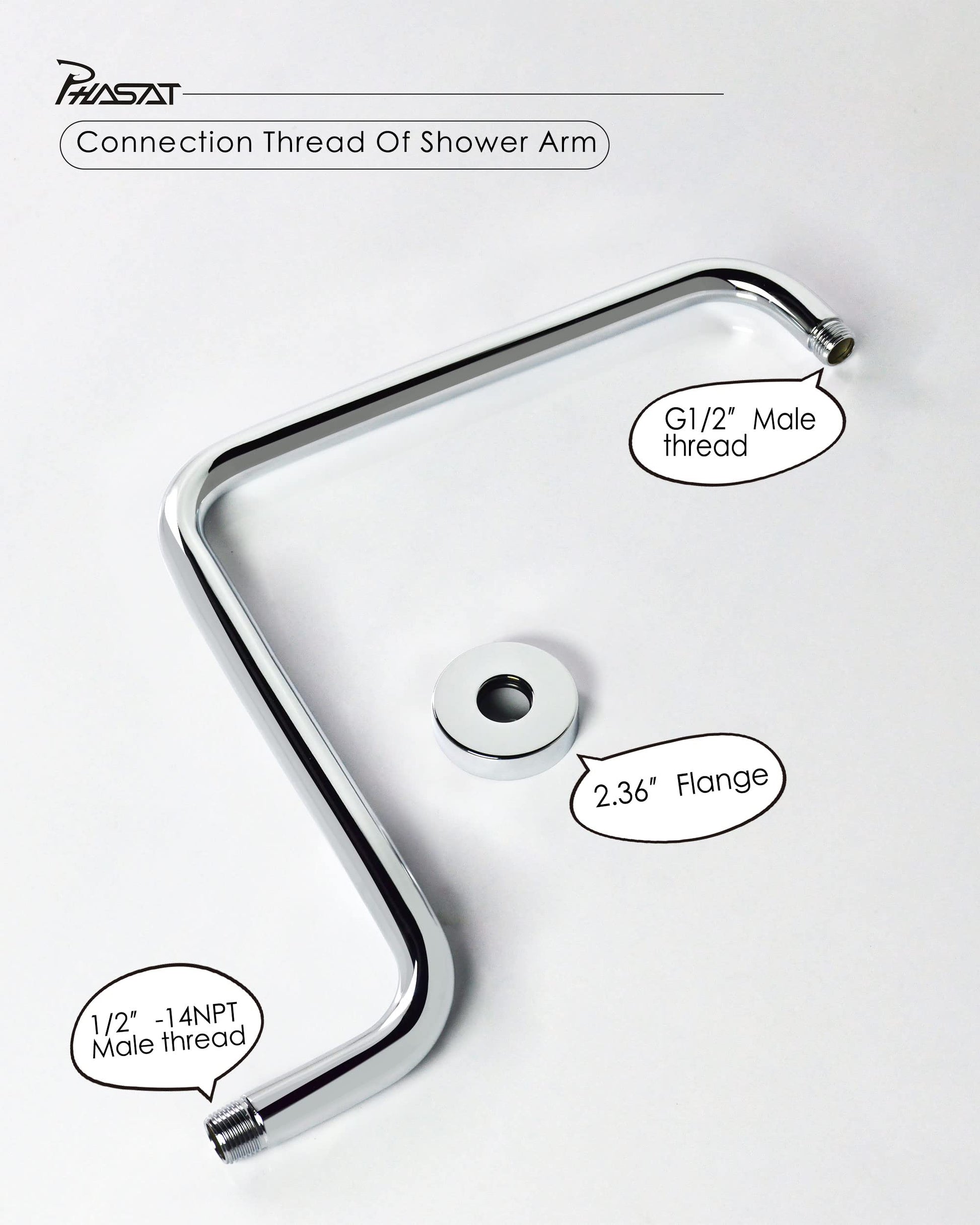 - U.S.Standard shower head arm fits US plumbing,1/2"-14 NPT male thread connects to the plumbing, 1/2" IPS male thread for fainfall shower head.