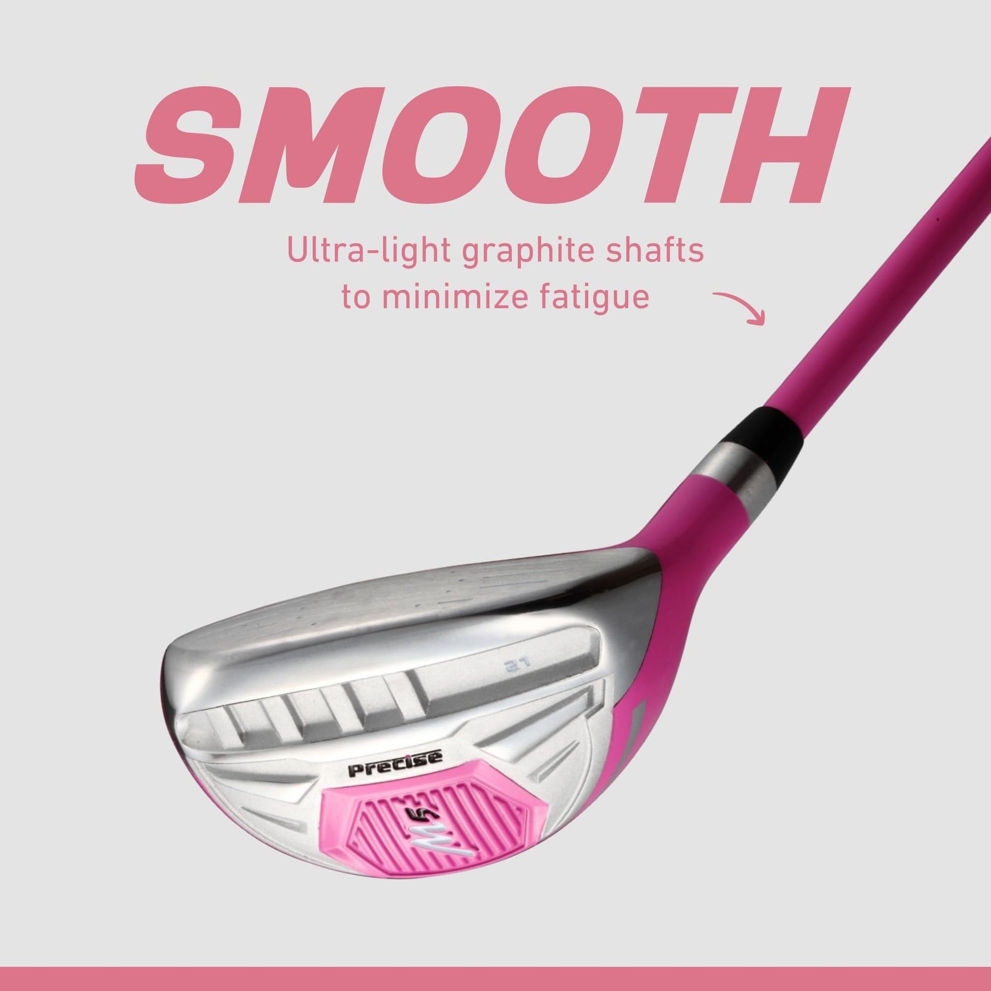 - Complete Women's Golf Club Set – The Precise M5 ladies golf set includes a 460cc titanium driver, #3 fairway wood, 21° hybrid, #5-PW stainless steel irons, putter, stylish deluxe stand bag with a cover, and three matching headcovers—everything needed for a confidence-boosting game.