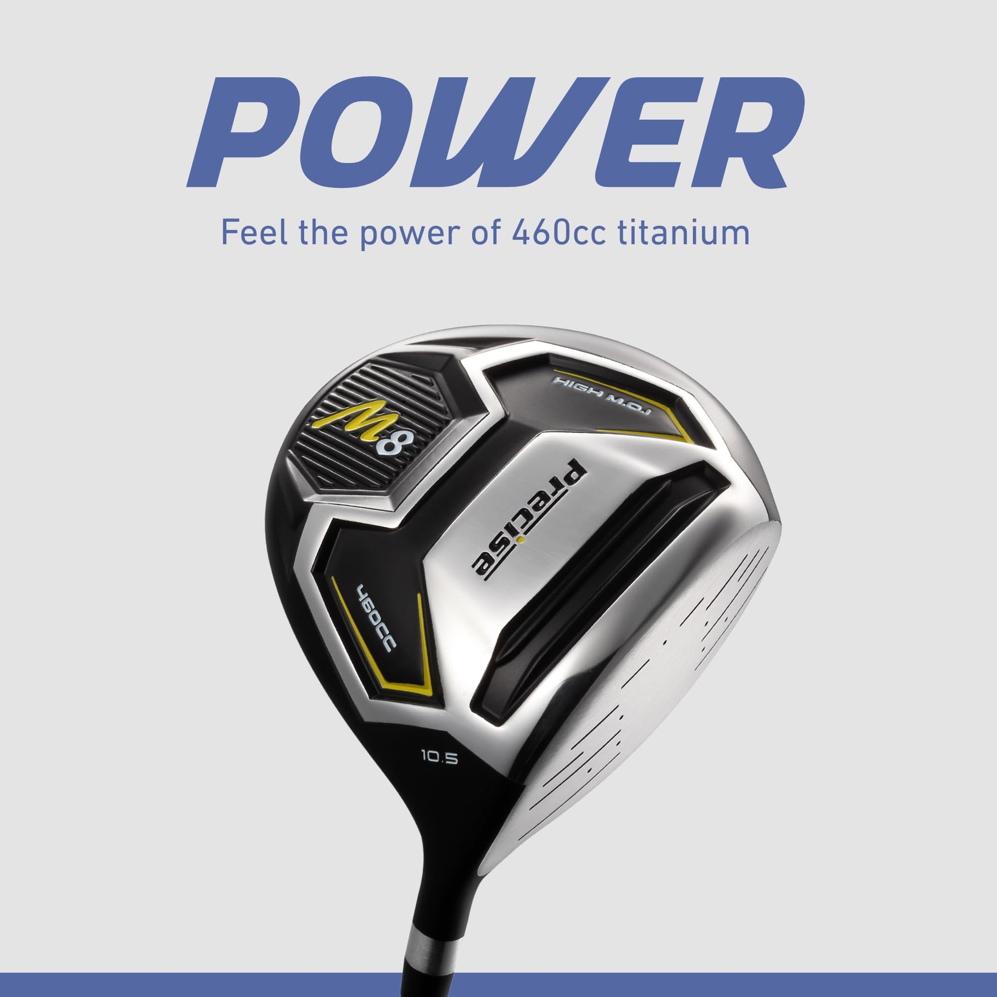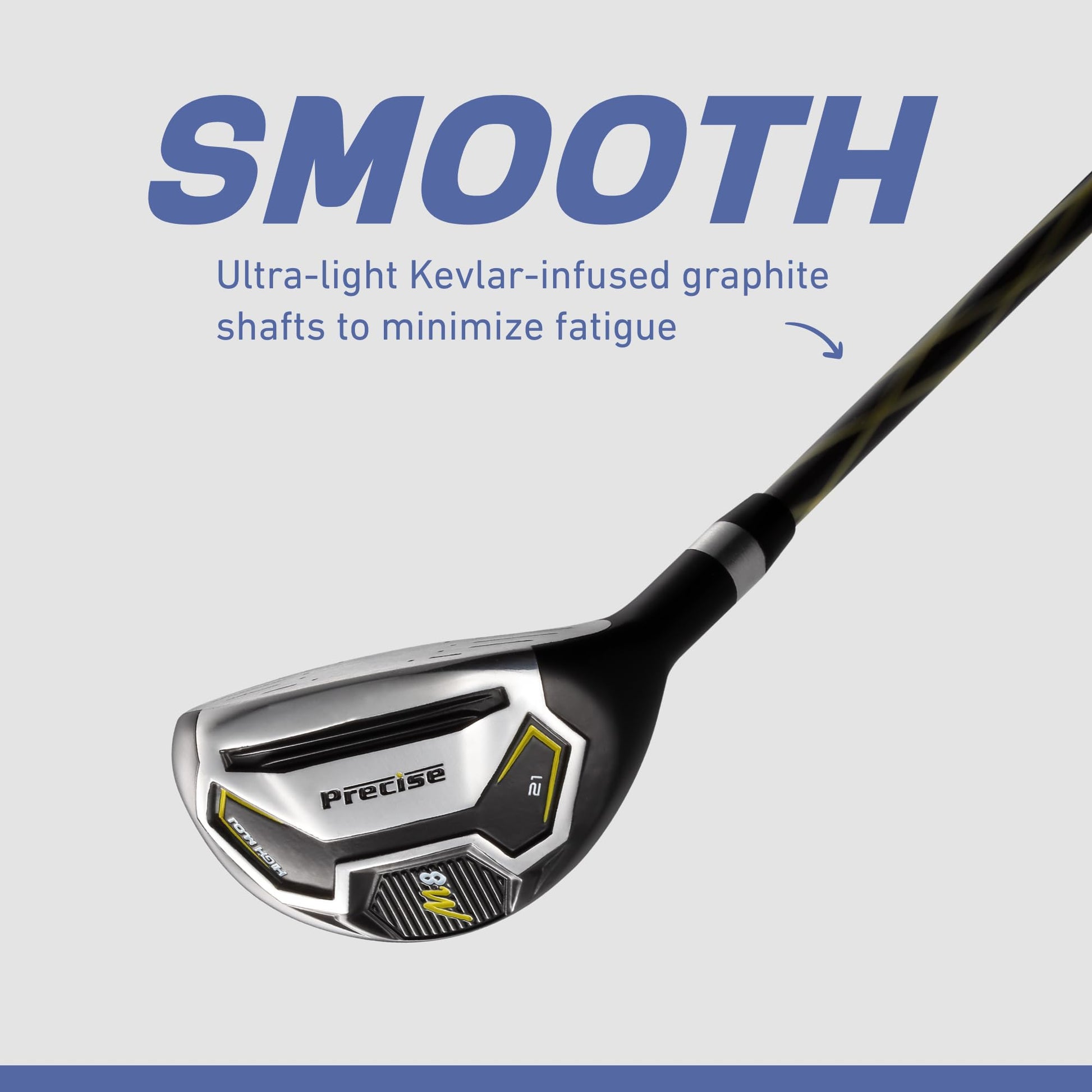 Precise M8 Men’s 17-Piece Golf Set – Driver, Woods, Hybrids, Irons (6-SW), Putter, Stand Bag, 4 Headcovers and Rainhood – RH, Reg/Tall, Kevlar Shafts