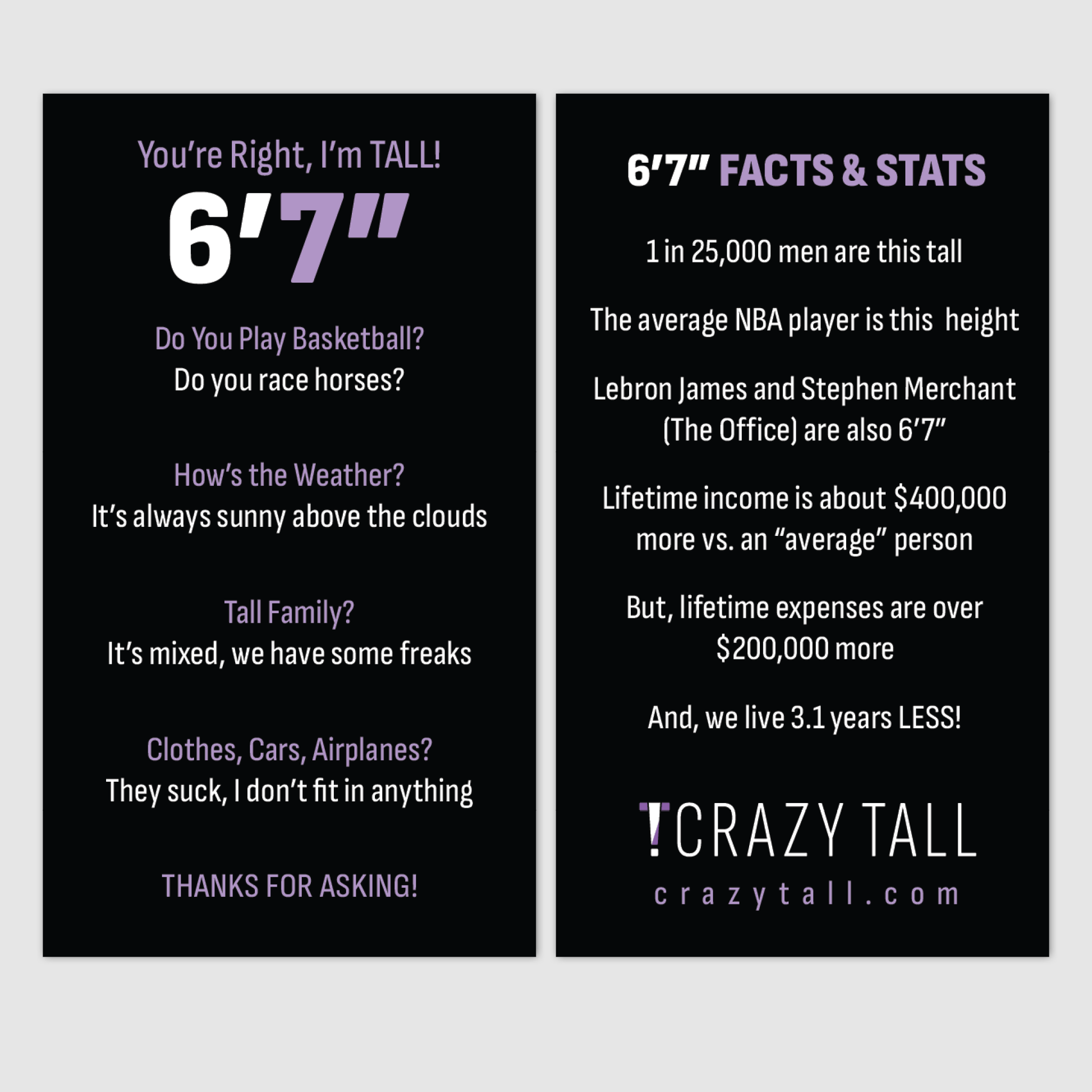 Surprise and delight your public when they approach you with questions about your CRAZY TALL vertical giftedness. Give them something to remember you by!