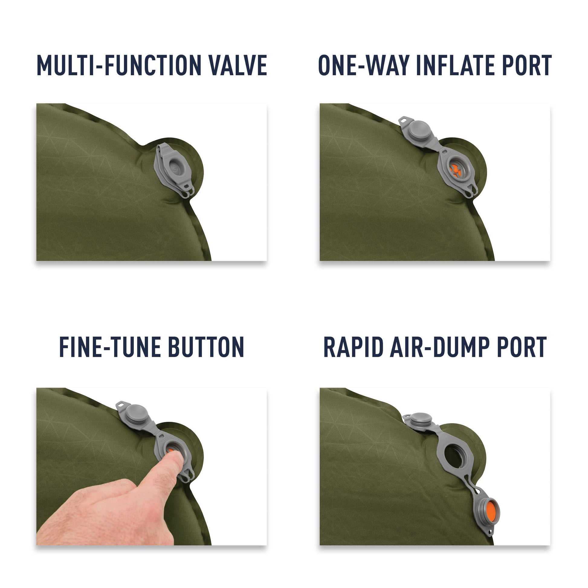 - Multi-function reversible valve for fast and easy inflation, one-way deflation for quick packup, and fine-tuning of air pressure