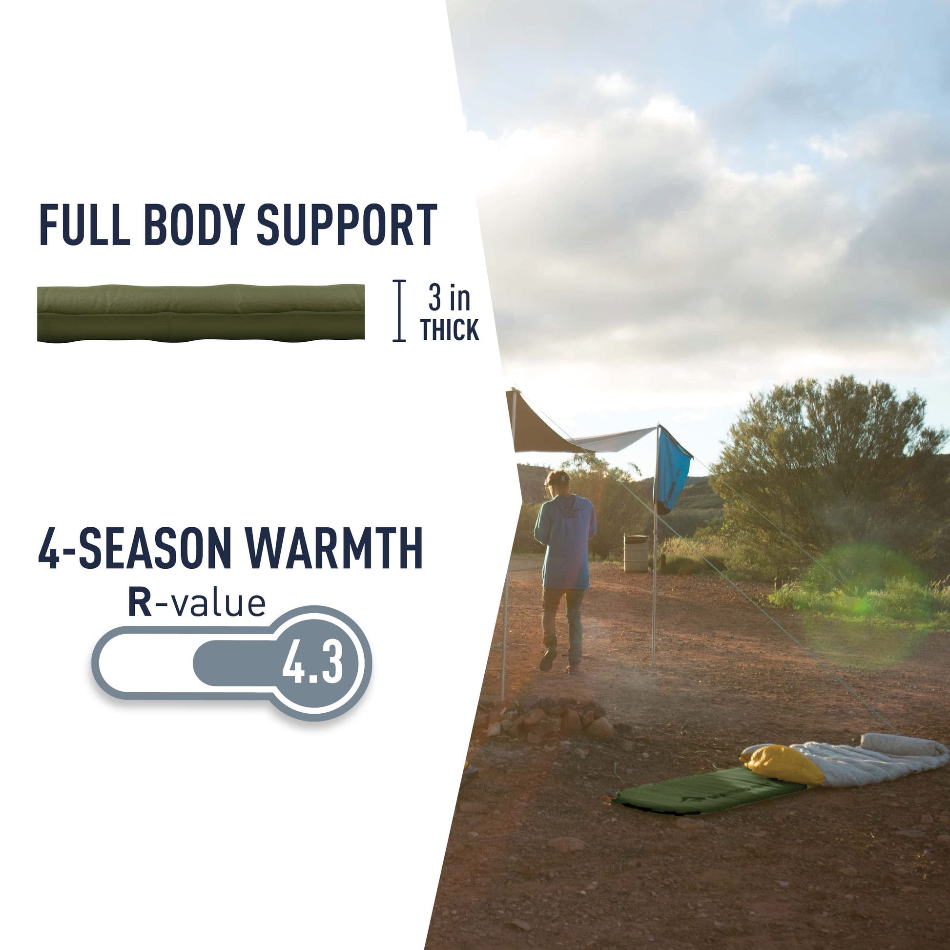 - 4-season, 3-inch thick foam sleeping pad is an extra warm and comfortable option for camping