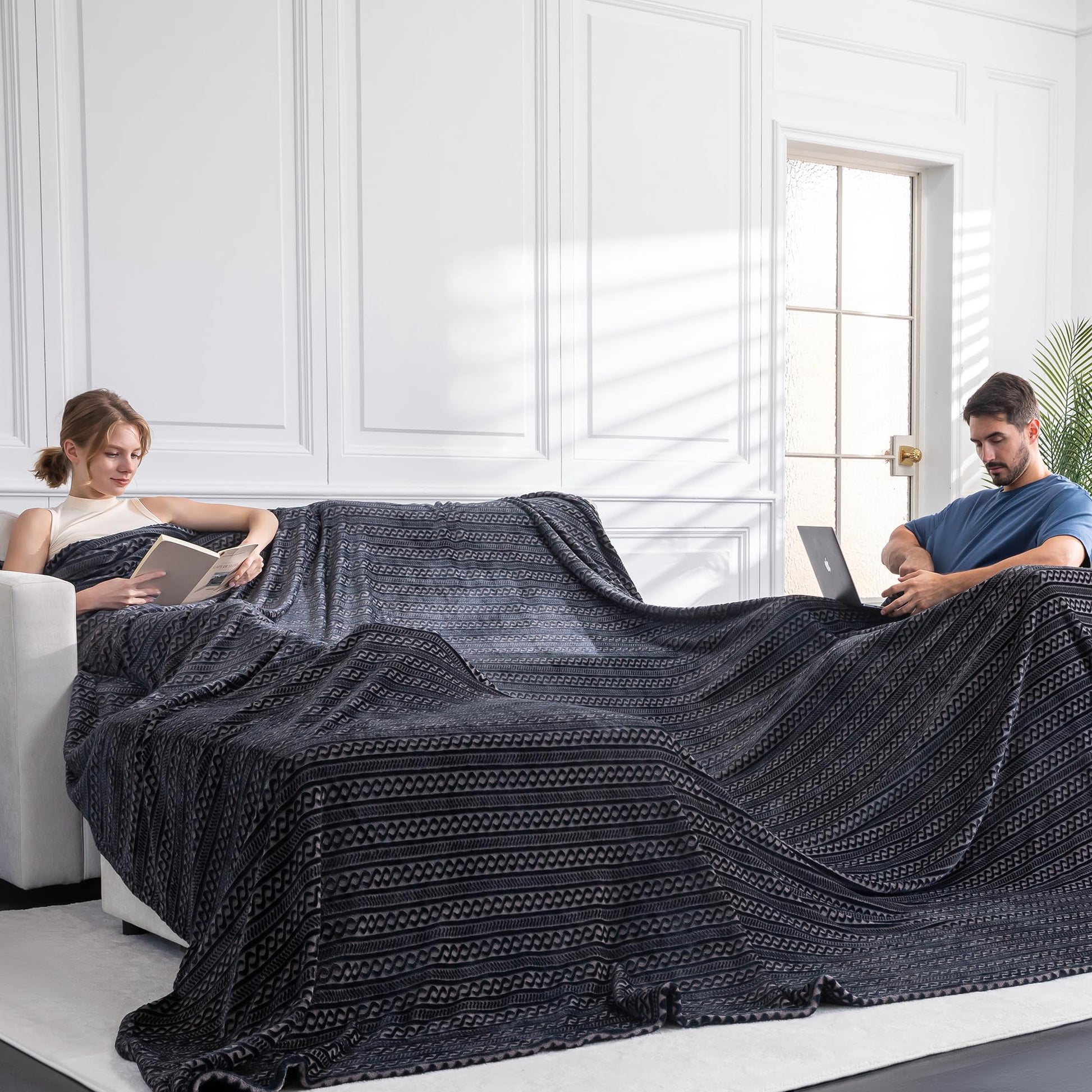 - Material & Quality: The 120" x 120" giant blanket is seamless and made from 100% high-quality polyester fiber for an extremely soft and comfortable feel. This blanket features advanced weaving technology for superior quality and a 3D texture.