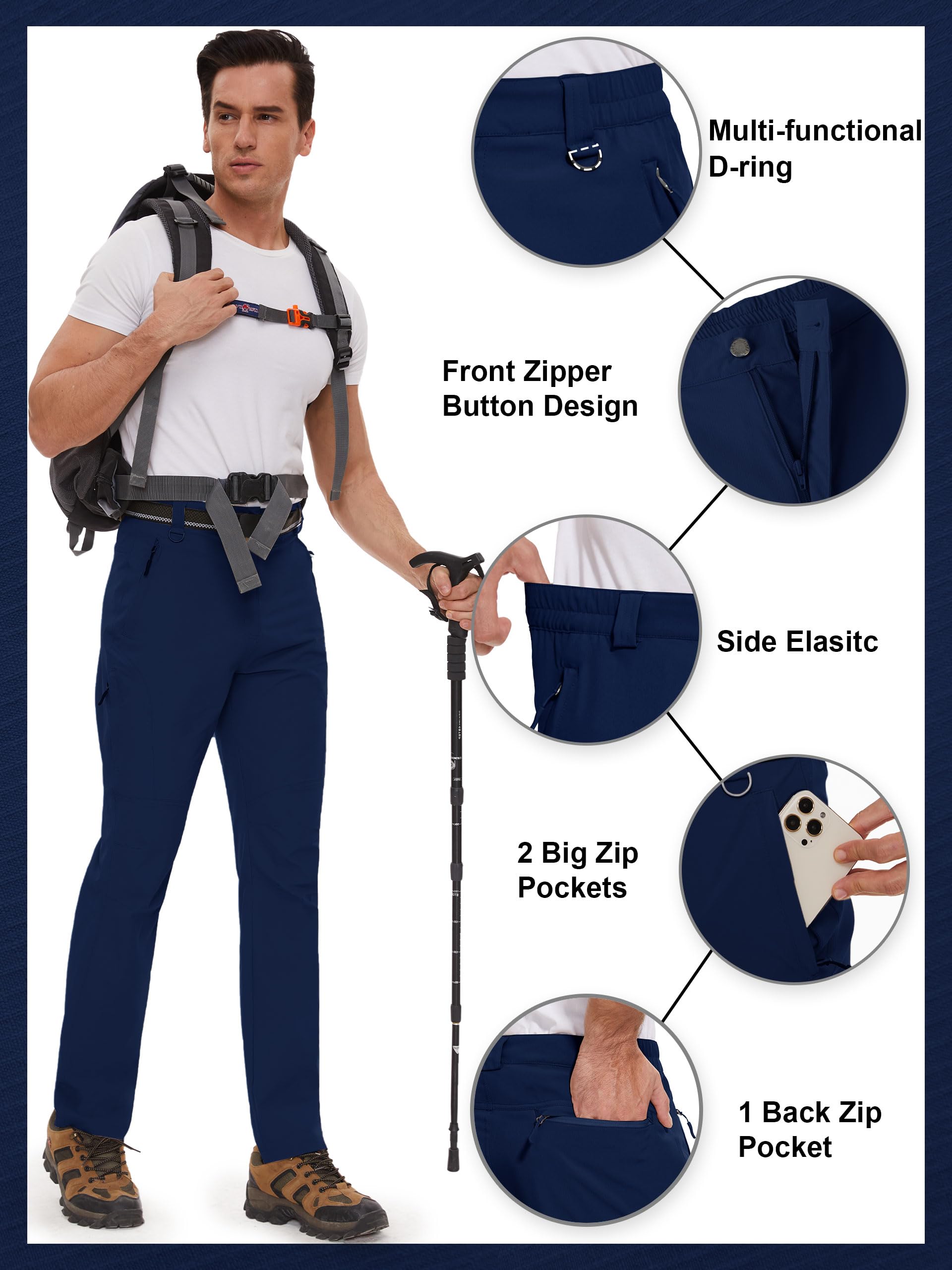 - DURABLE FABRIC: Quick dry, lightweight and breathable fabric that features high elasticity make these Men's hiking pants for men comfortable and freedom to move. It can successfully stop water from splashing; However, prolonged immersion in water will render its water-resistant function useless