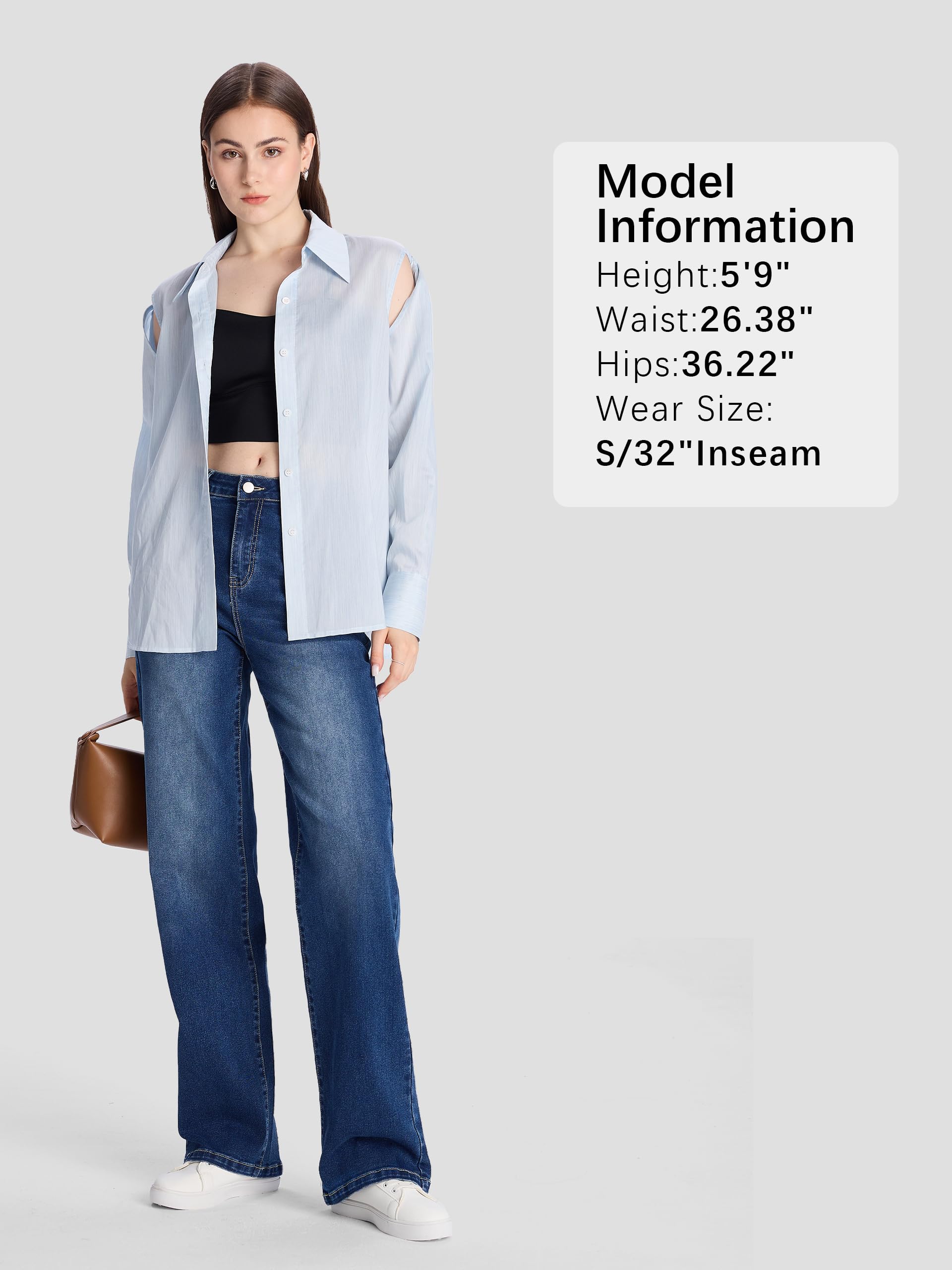 - [Easy to match]:The straight wide leg jeans for women great to pair with your blouse, vests, shirts, sweaters, coats, sneakers,sexy high heels and so on, a must-have womens jeans in your wardrobe all year round. perfect for any teen girls, mom, ladies as a gift