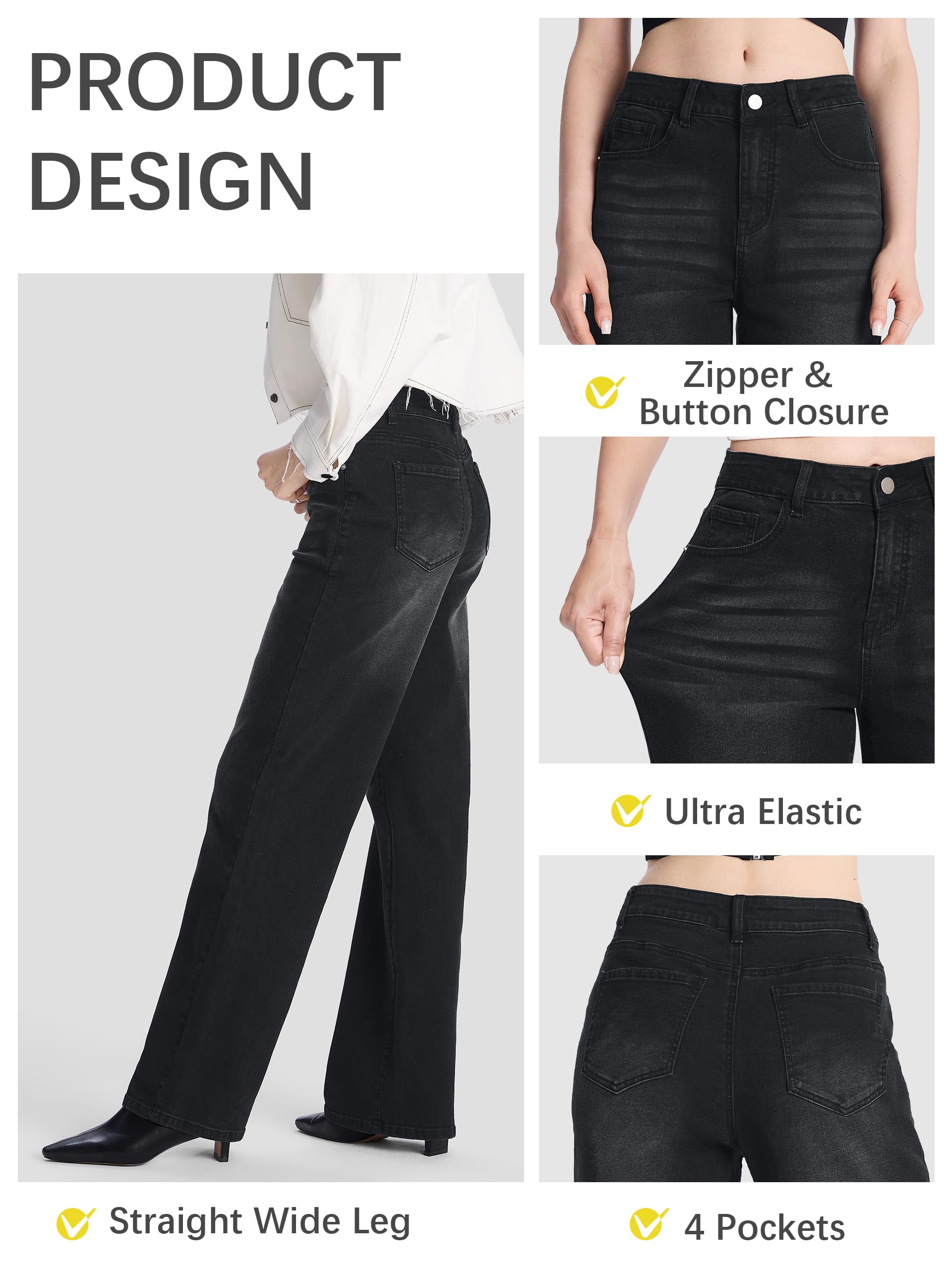 - [Easy to match]:The straight wide leg jeans for women great to pair with your blouse, vests, shirts, sweaters, coats, sneakers,sexy high heels and so on, a must-have womens jeans in your wardrobe all year round. perfect for any teen girls, mom, ladies as a gift