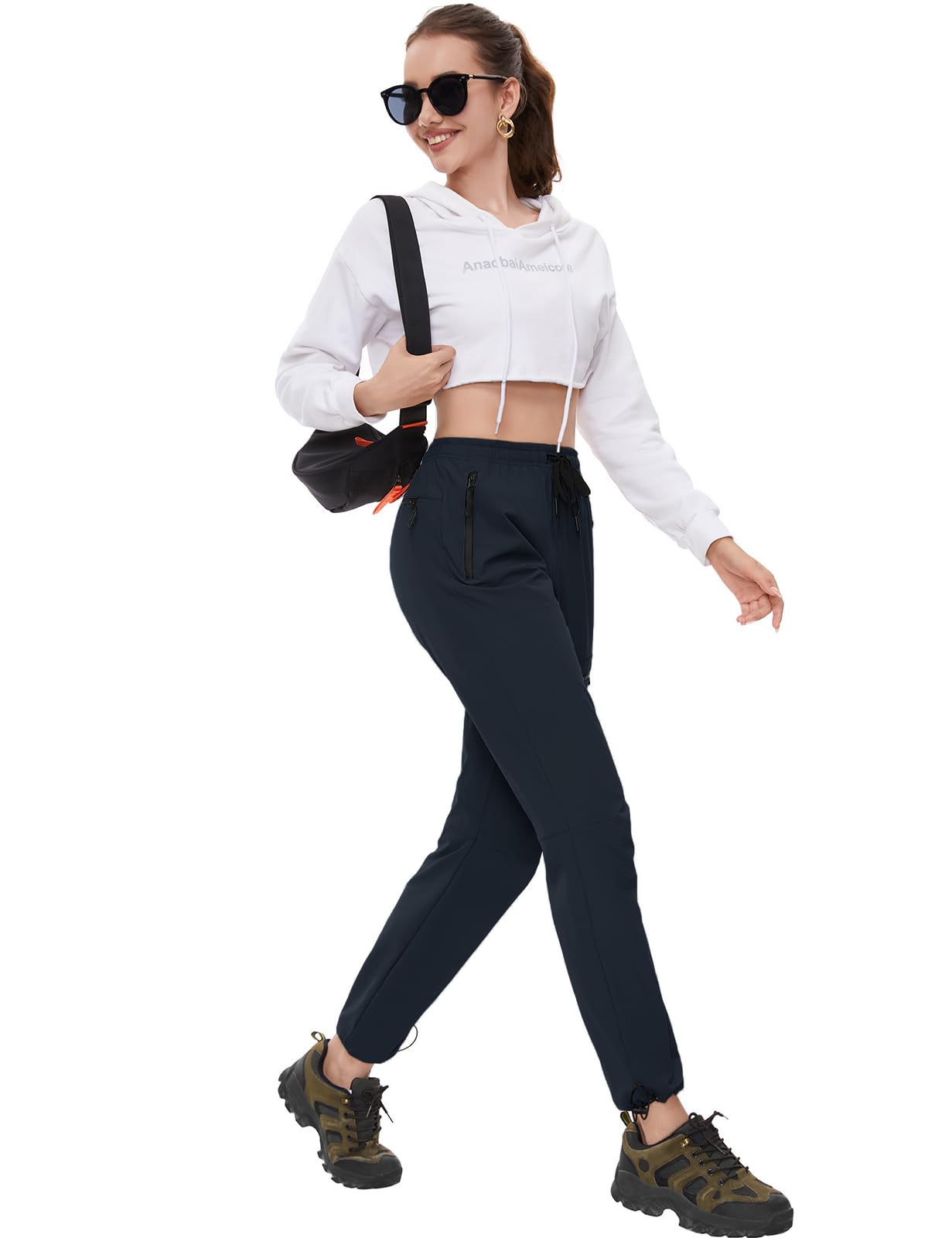 - Human Ergonomic Design: Hiking pants for women are made of waterproof materials and can also resist harmful UV rays outdoors. Adjustable ankle cuff allows to adjust the tightness of athletic pants for women according to your personal needs, and also allows you to easily change the length of lightweight hiking pants. Tightening cuff during hiking can prevent insects or mosquitoes from entering.