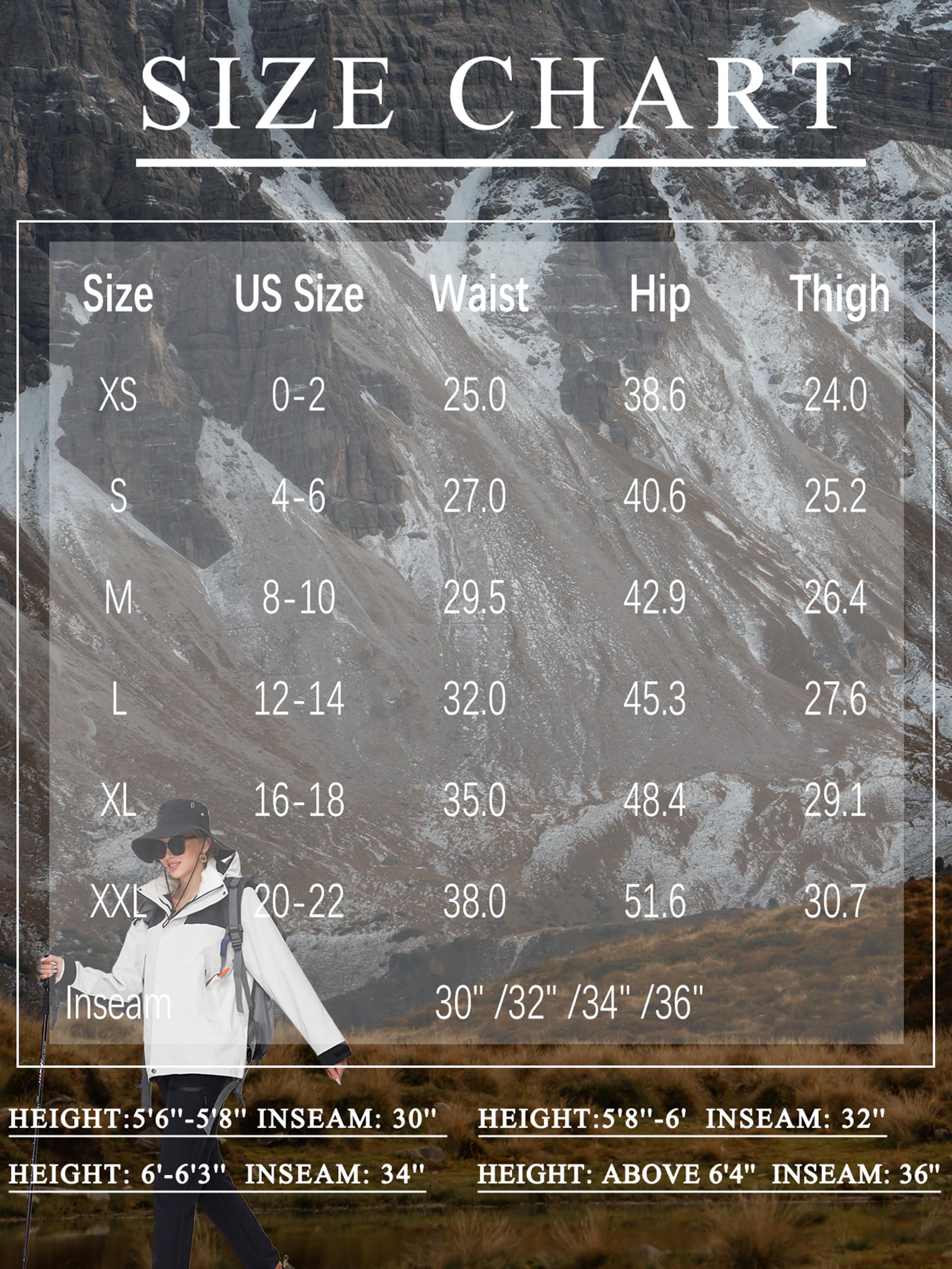- Without Size Constraints: We launched tall (34" inseam) and and extra tall (36" inseam) version, if you got a tall figure, the hiking pants are great choice for you! Besides, we also launched another two inseams(30" inseam and 32" inseam) to choose from. Please refer to the size chart to select the appropriate size of hiking pants women tall!