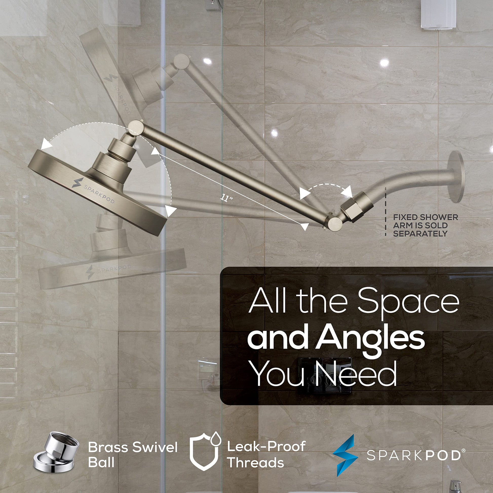 SparkPod Round Rain Shower Head with Extension Arm - Height Adjustable Shower Head with High Pressure Performance - Easy 1-Minute Installation (11" Arm Extension, Elegant Brushed Nickel)
