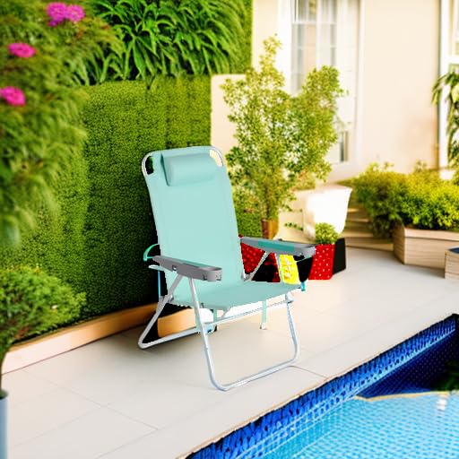 - High Seat Oversized Beach Chairs for Adults: The 5-Position Reclining with High Back Beach Chair provides you an ultimate comfortable seating experience. Easily secure the armrest to adjust the back in an angle you like, and relax and enjoy the breeze during your journey.