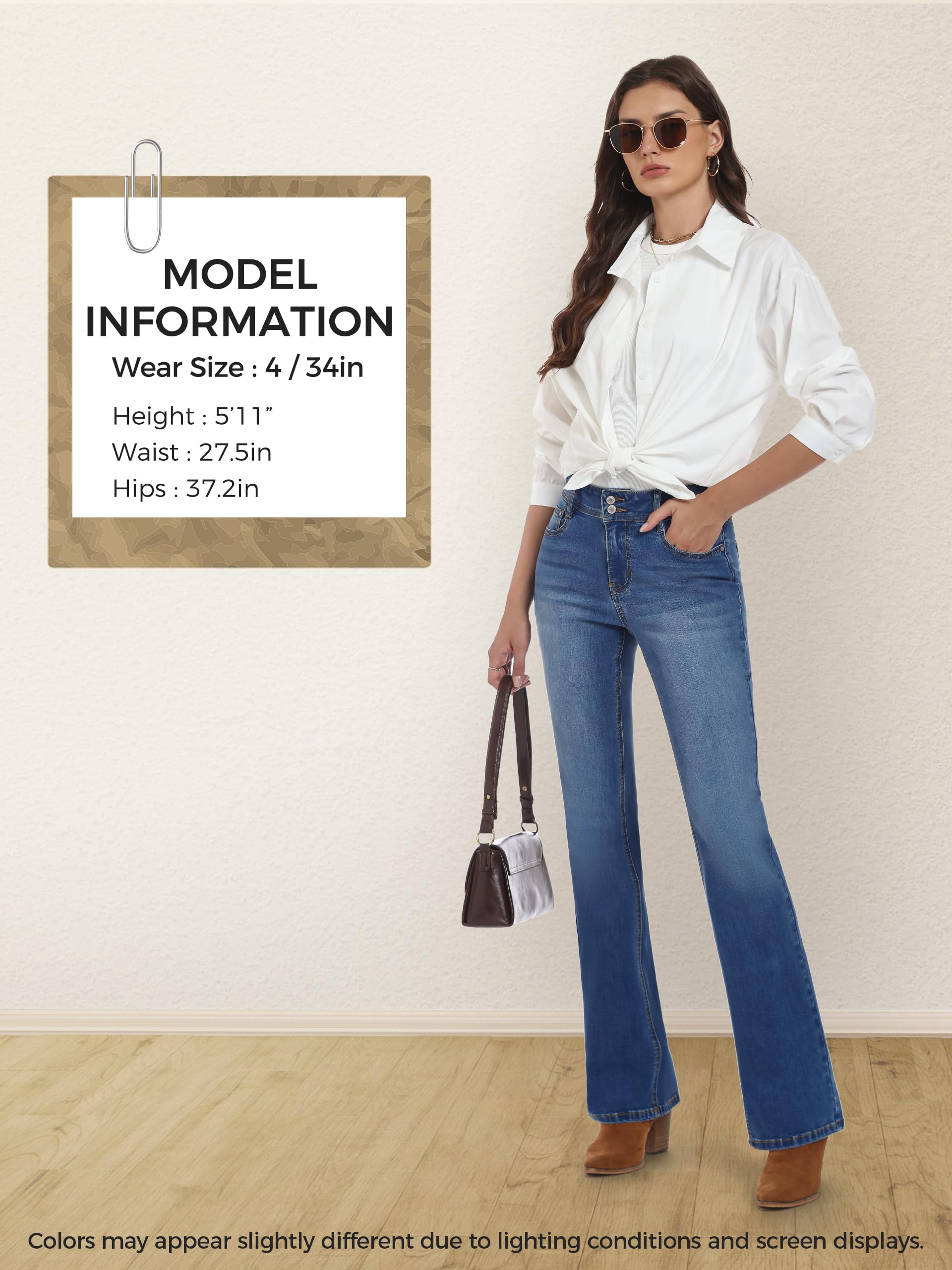 Tallemon Tall Women's Bootcut Jeans Curvy Mid-Rise Stretchy Denim Pants Classic Bell Bottom Trouser,34",Blue,6