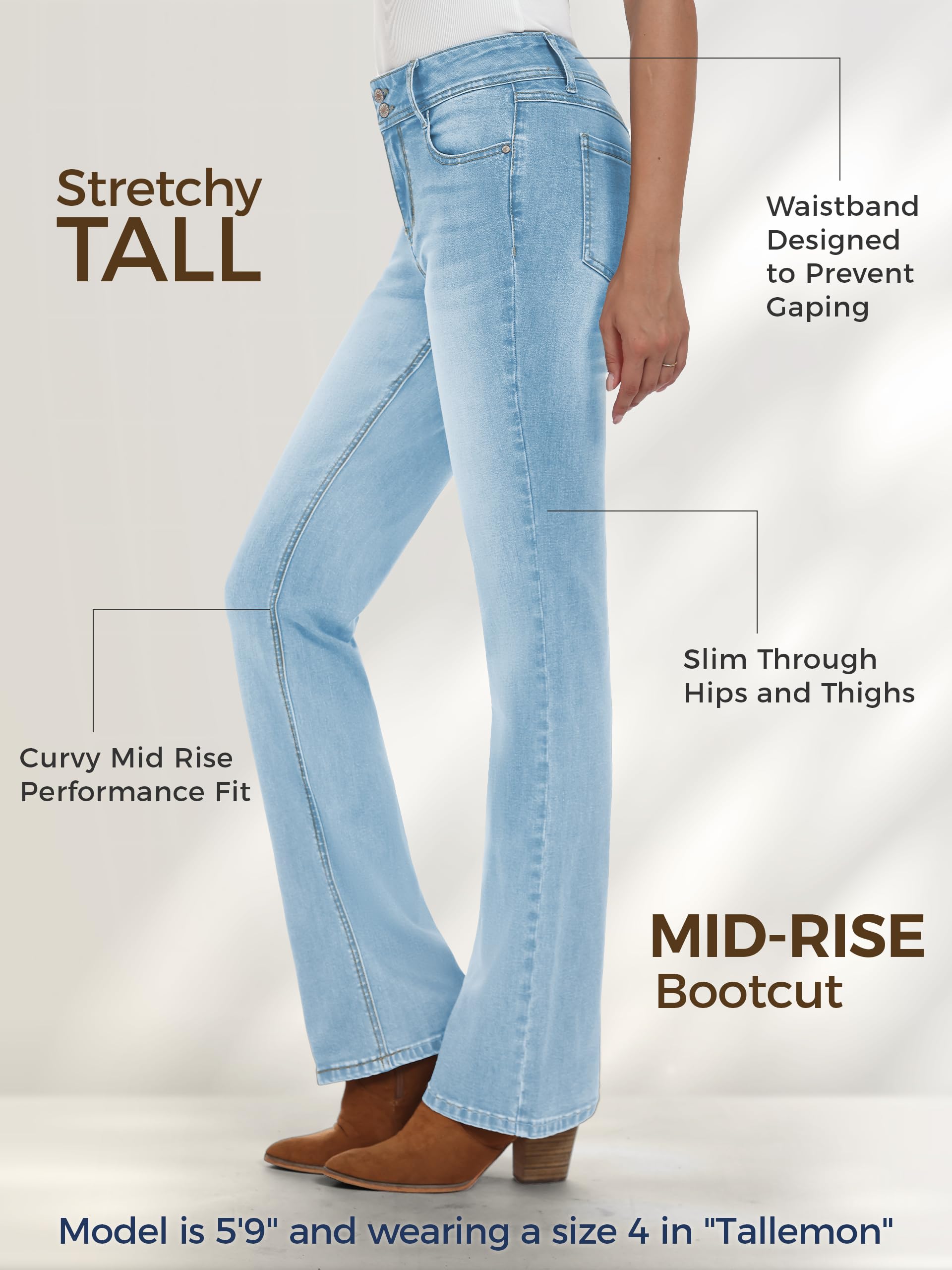 Tallemon Tall Women's Bootcut Jeans Curvy Mid-Rise Stretchy Denim Pants Classic Bell Bottom Trouser,34",Light Blue,2
