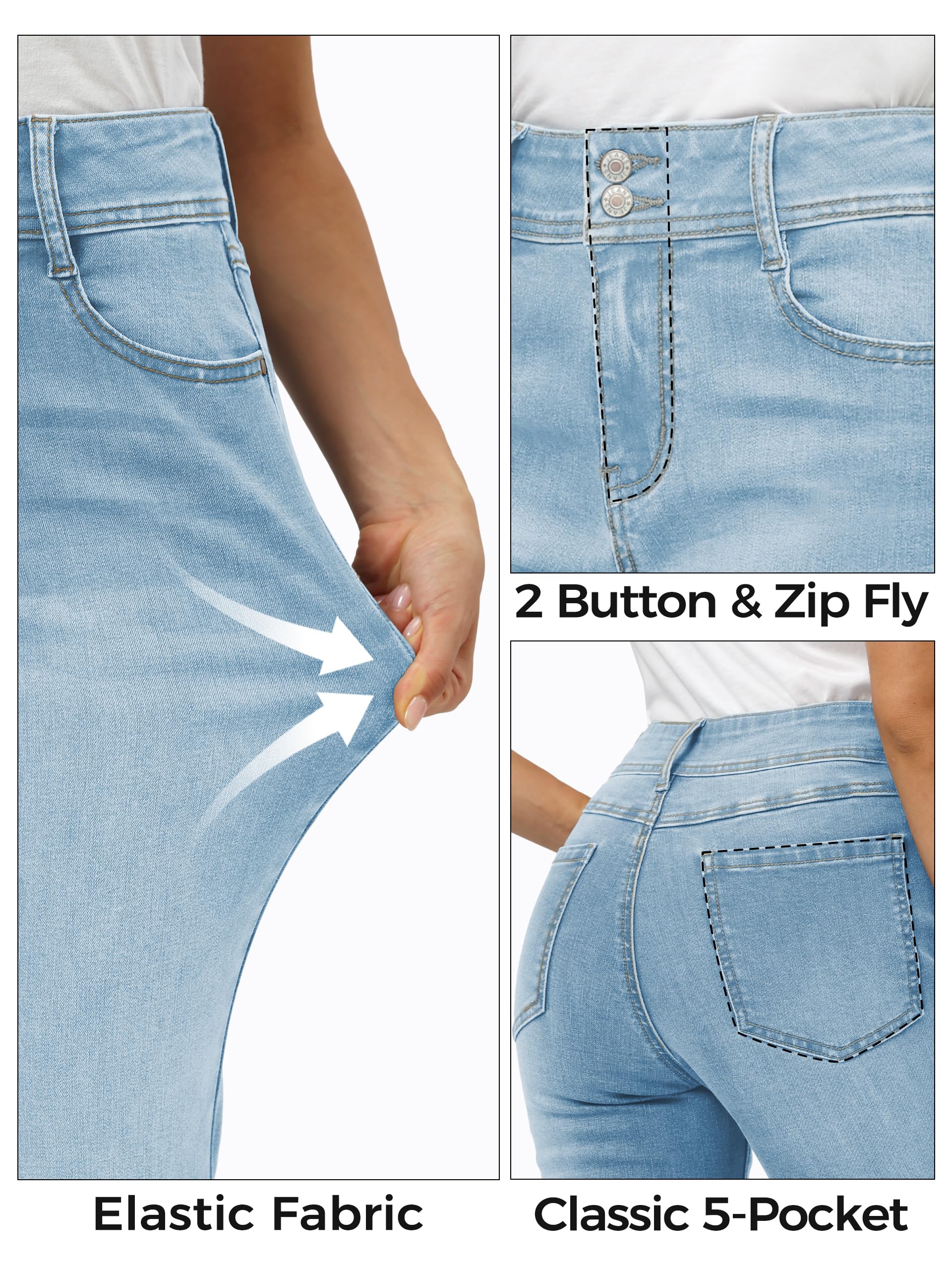 - [Stretch Fabric]: Made with stretchy, breathable denim, these jeans offer comfort & flexibility, allowing you to move with ease throughout the day without feeling restricted.Boot cut leg style provides a streamlined silhouette to meet different body types