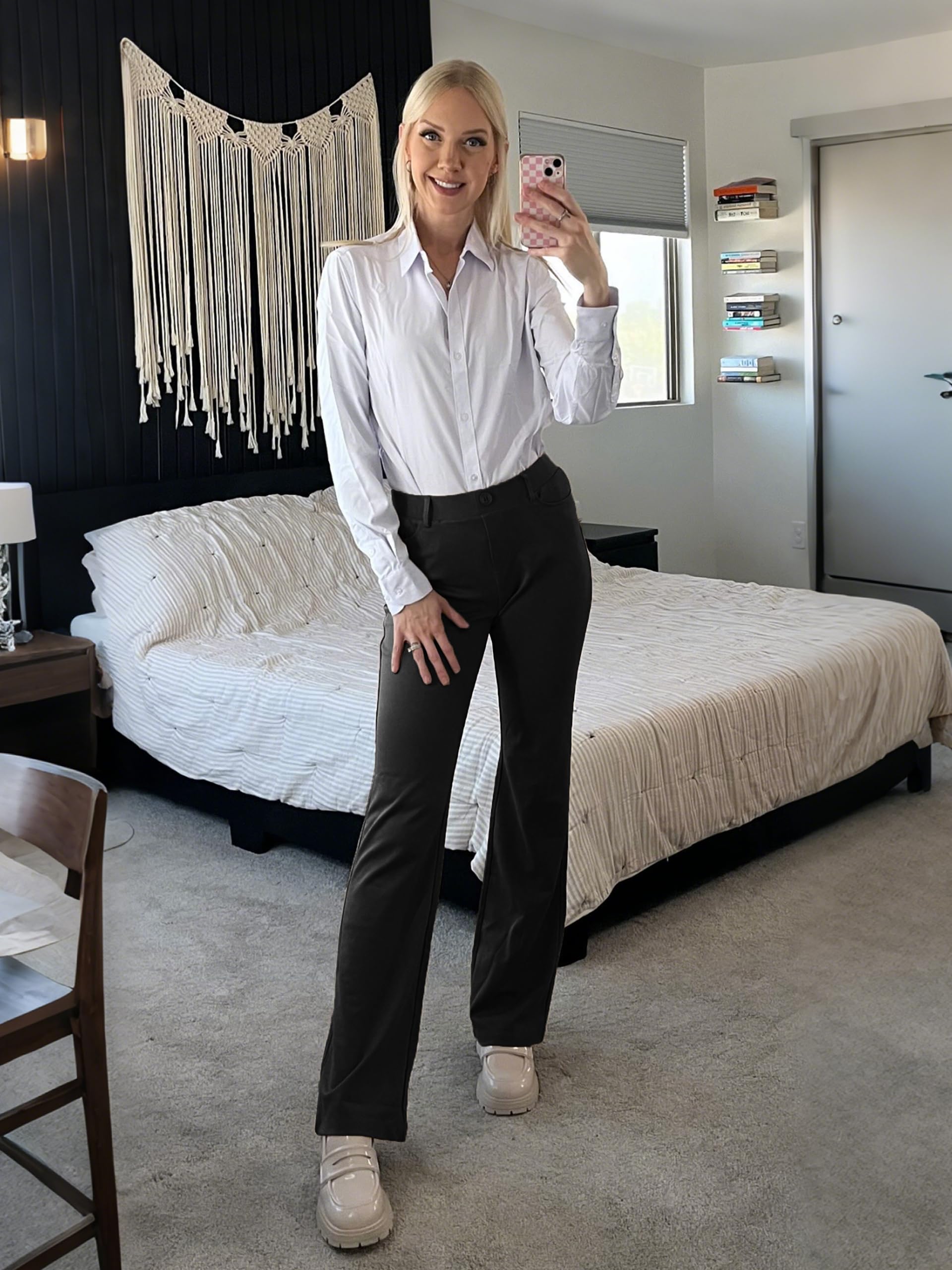 - [Stretch Bootcut]: Business casual pants feature a bootcut design, fit the hips and thighs, and a slight flare from knee down balances curves. Bootleg slacks made from 4-way stretch knit ponte fabric maintain a soft cotton feel and yoga flexibility for all-day mobility