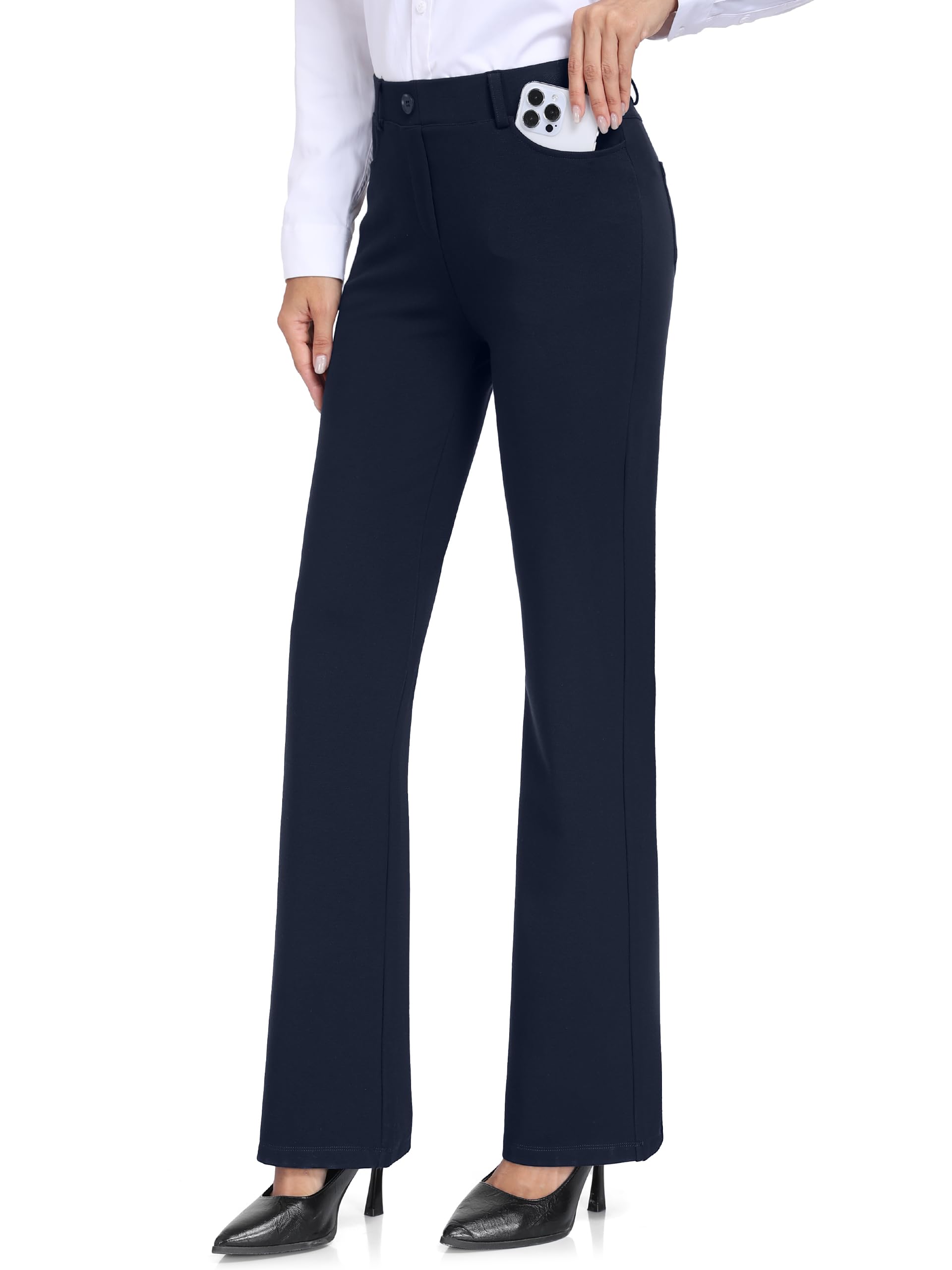 - [Stretch Bootcut]: Business casual pants feature a bootcut design, fit the hips and thighs, and a slight flare from knee down balances curves. Bootleg slacks made from 4-way stretch knit ponte fabric maintain a soft cotton feel and yoga flexibility for all-day mobility