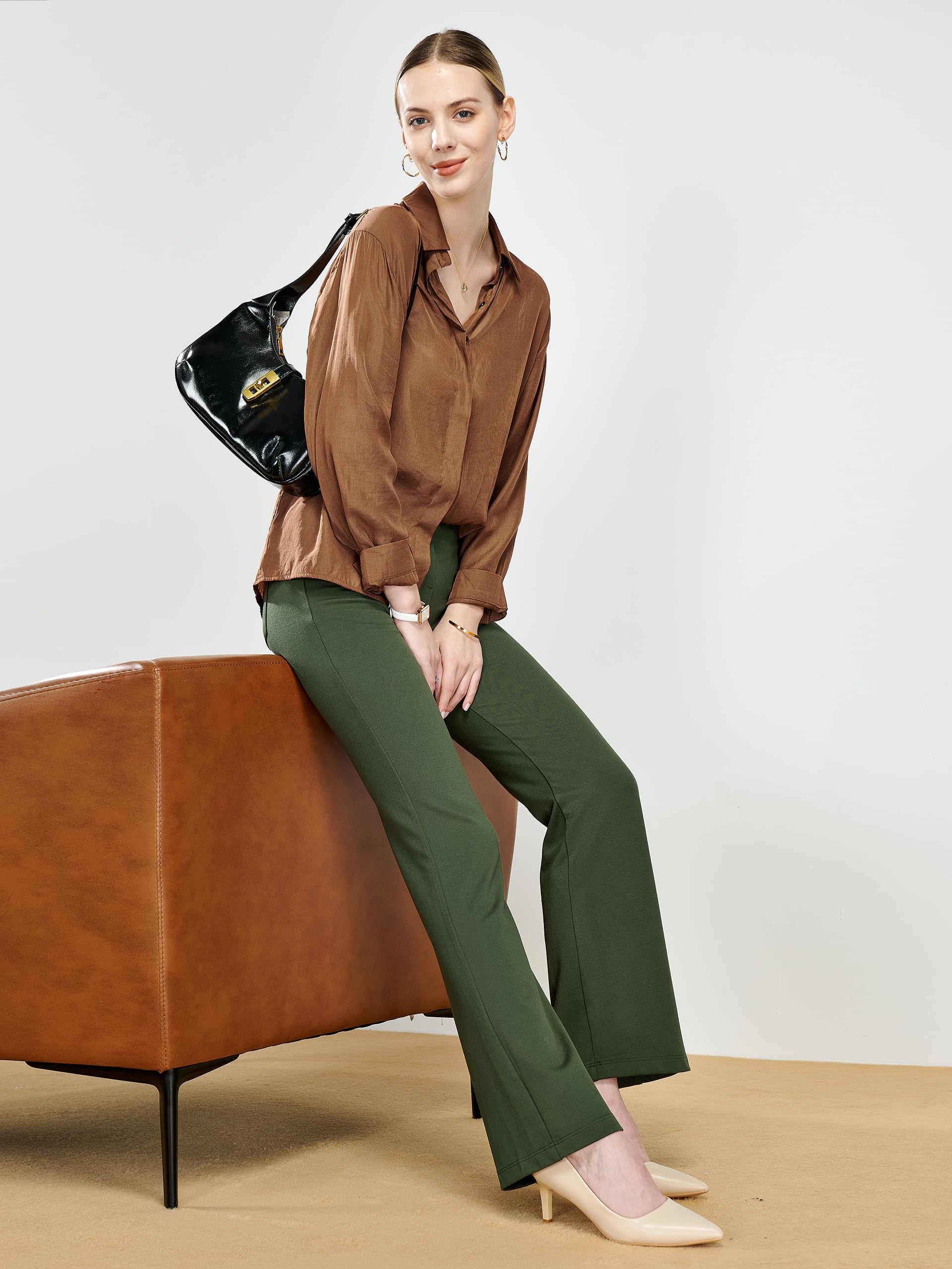 - DRESSY DESIGN: Flat front, non-functional button, belt loops and faux fly make pants dressy, ideal for office work, meeting, teaching and business casual. Women's slacks with mid rise and slight flare cut also fit casual wear.
