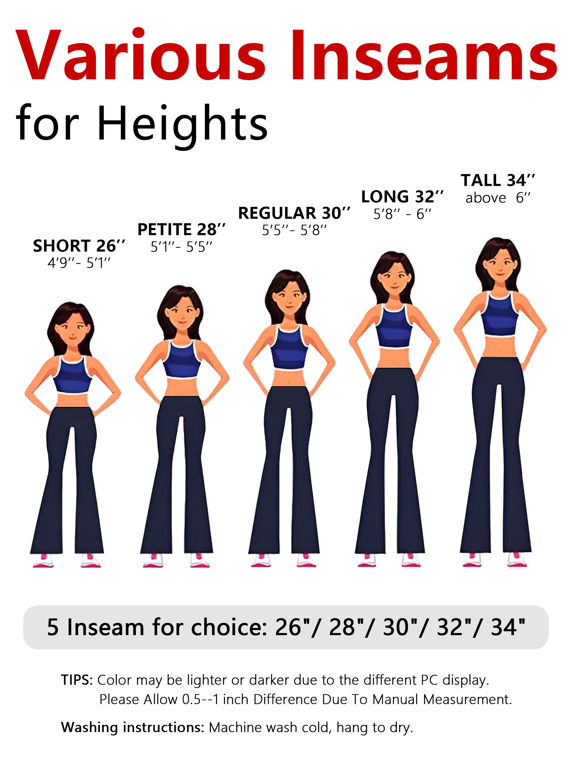 - 5 INSEAM LENGTHS: These womens dress pants feature with five inseam lengths: Short - 26" inseam fits women 4'9" - 5'1" / Petite - 28" inseam fits women 5'1" - 5'5" / Regular - 30" inseam fits women 5'5" - 5'8" / Long - 32" inseam fits women 5'8" - 6'/ Tall - 34" inseam fits women above 6'. Please refer to the size chart shown on the last picture for your right length of pants. Tall pants for women, long pants and petite pants are available