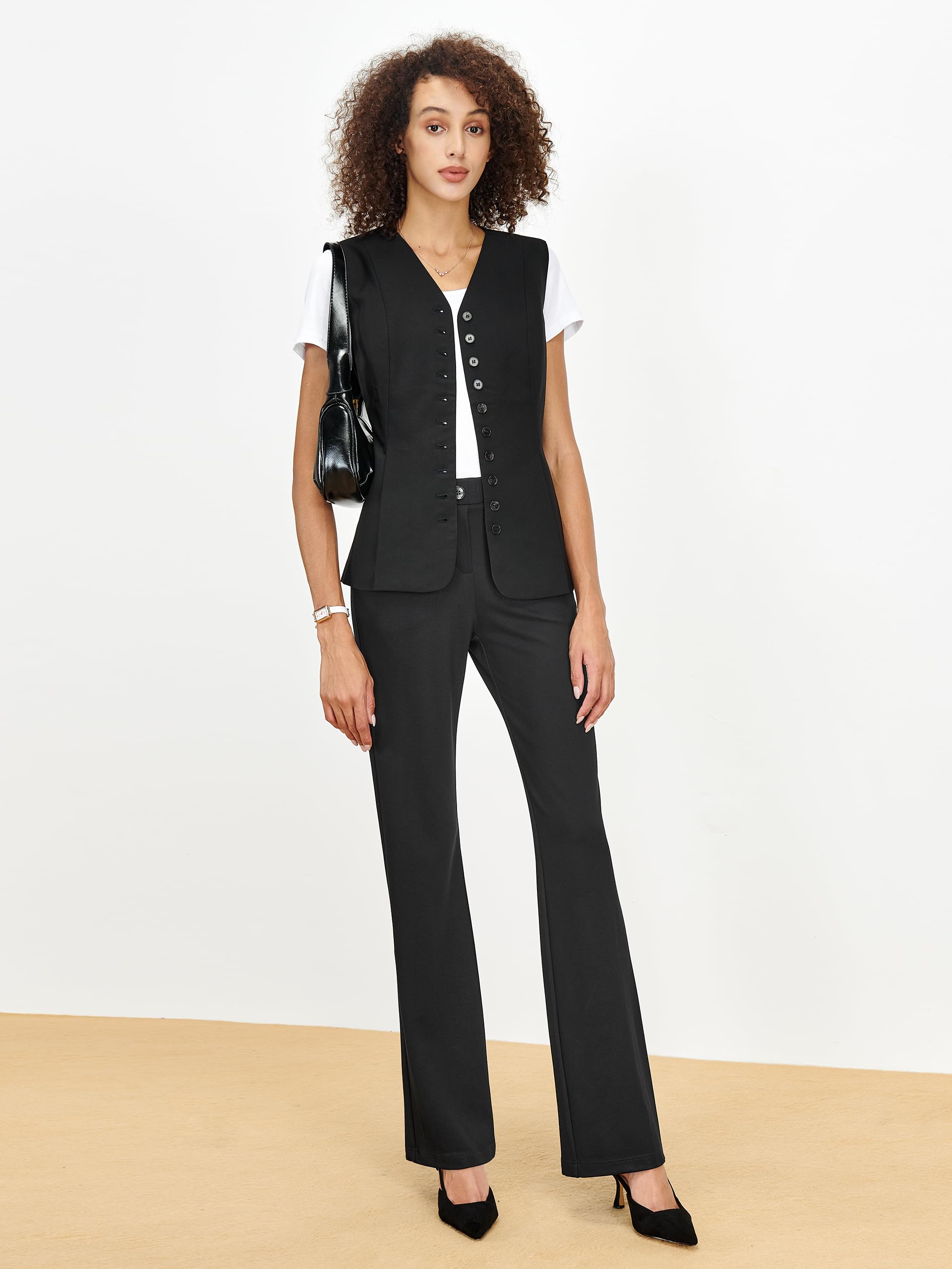 - DRESSY DESIGN: Flat front, non-functional button, belt loops and faux fly make pants dressy, ideal for office work, meeting, teaching and business casual. Women's slacks with mid rise and slight flare cut also fit casual wear.