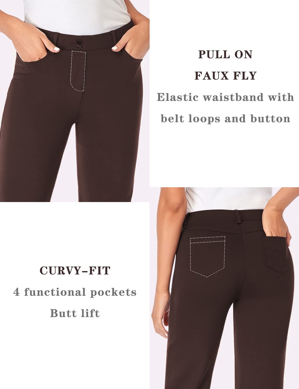 Tapata Women's 28''/30''/32''/34'' Stretchy Bootcut Dress Pants with Pockets Tall, Petite, Regular for Office Work Business 34", Brown, XXL