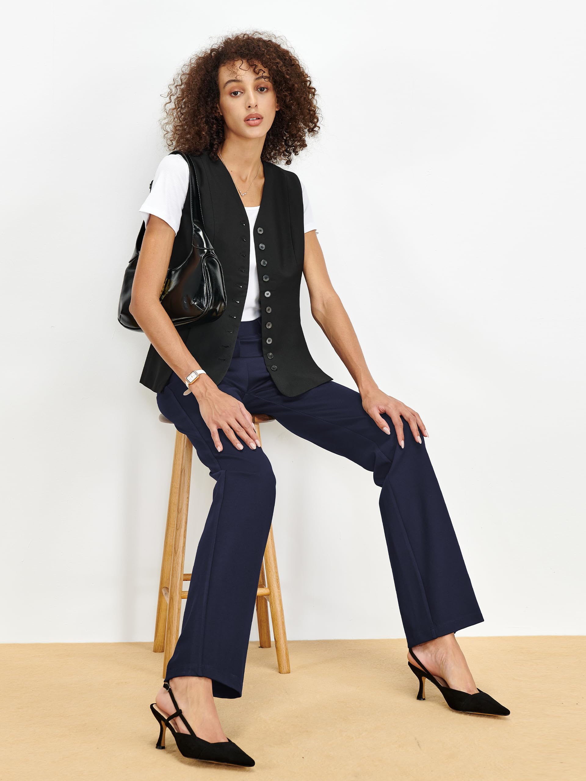 - DRESSY DESIGN: Flat front, non-functional button, belt loops and faux fly make pants dressy, ideal for office work, meeting, teaching and business casual. Women's slacks with mid rise and slight flare cut also fit casual wear.