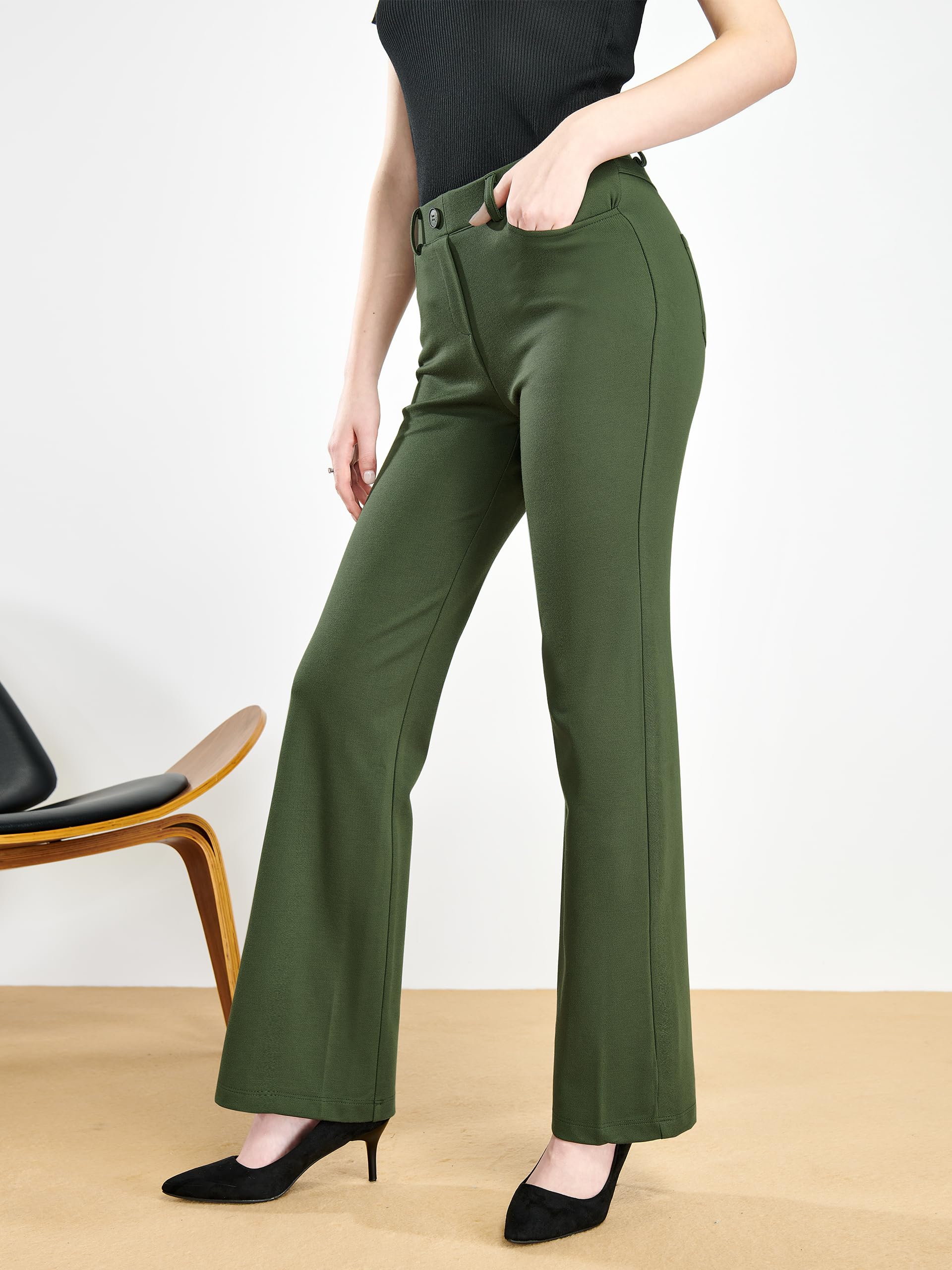 - DRESSY DESIGN: Flat front, non-functional button, belt loops and faux fly make pants dressy, ideal for office work, meeting, teaching and business casual. Women's slacks with mid rise and slight flare cut also fit casual wear.