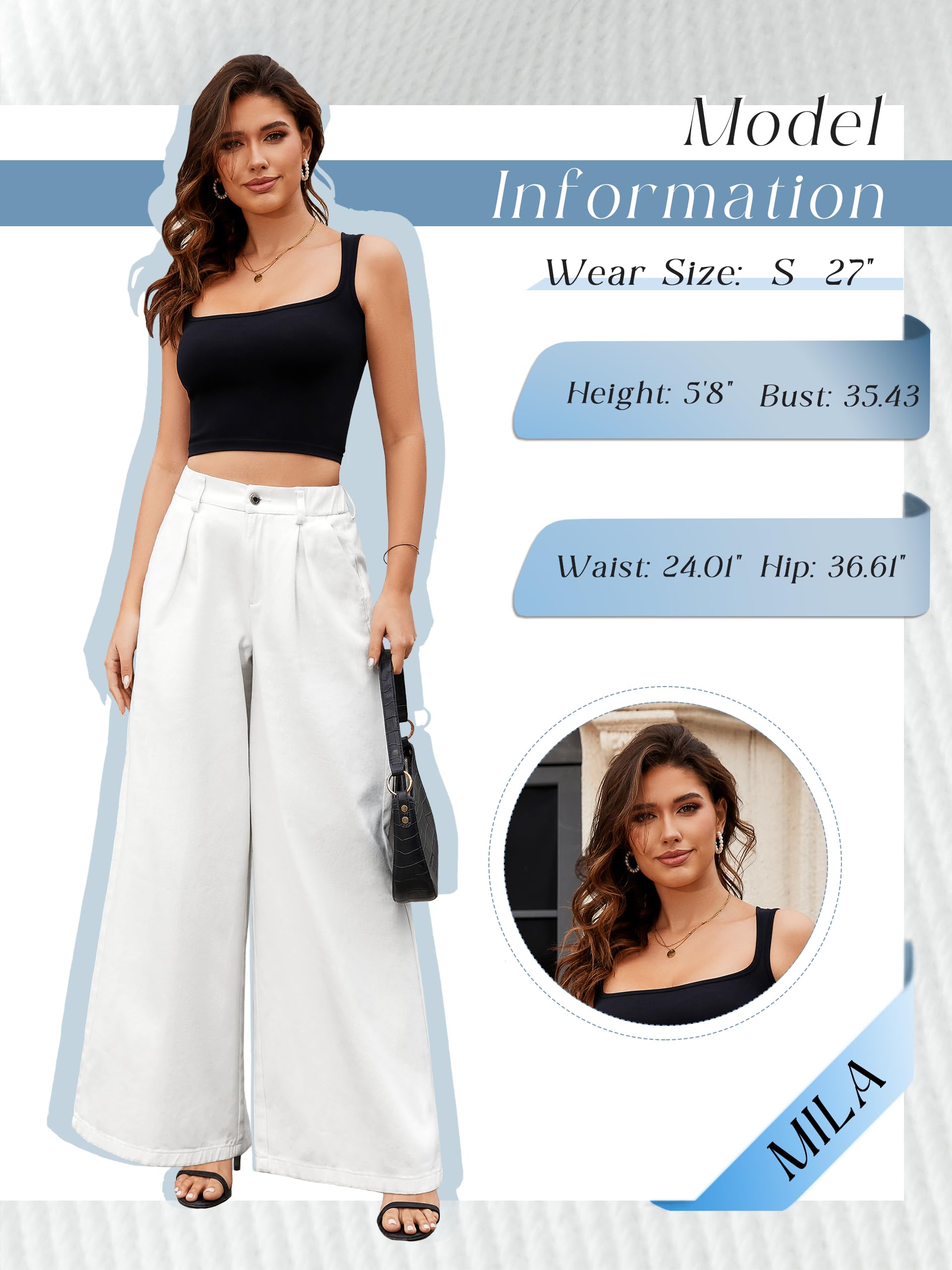 - [Soft Denim Fabric]: Women's palazzo trousers are made of cotton denim fabric, which is breathable and comfortable, and does not easily deform, giving a soft touch and a long-lasting experience. The unique wash process reveals a natural worn-in look and enhances the layering of the palazzo pants