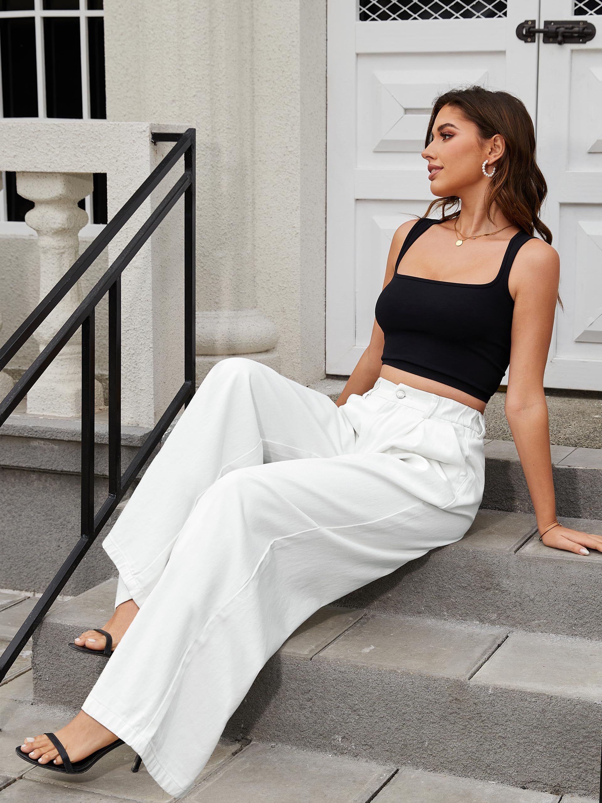 - [4 Inseam Lengths]: Women's wide-leg jeans come in four inseam options: Petite 24" for 4'11"-5'2", Regular 27" for 5'2"-5'6", Long 30" for 5'6"-5'10", and Tall 33" for 5'11"-6'3". The 24" and 27" inseams can be worn as capris or cropped jeans for taller women, creating a chic, trendy look