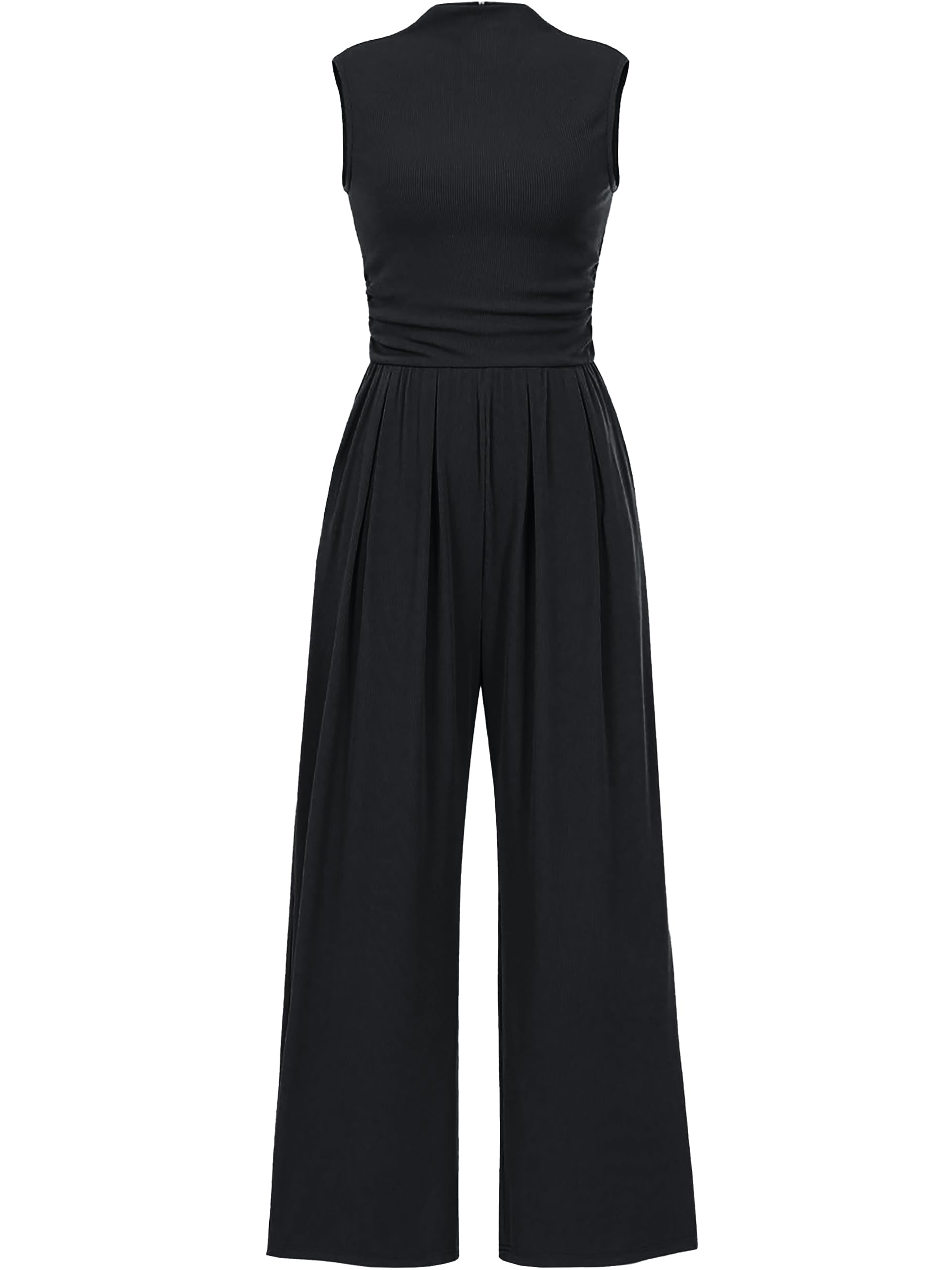- Simple and Elegant: Solid color one-piece jumpsuits are designed with a mock neck, adding an elegant touch. Wide leg design effectively modifies the leg shape and body proportions. The sleeveless style is easy to wear in layers or alone in warm weather.