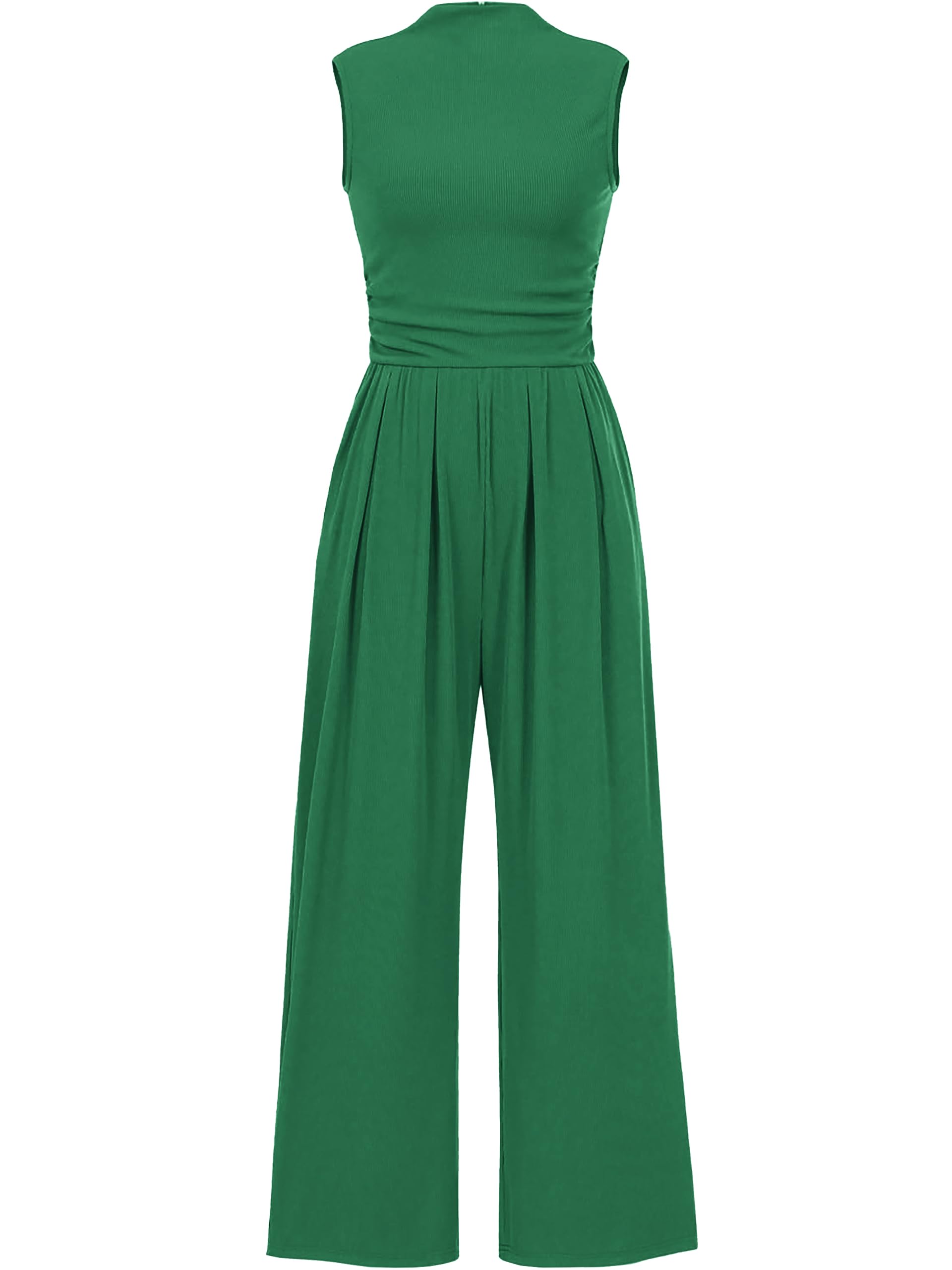 - Simple and Elegant: Solid color one-piece jumpsuits are designed with a mock neck, adding an elegant touch. Wide leg design effectively modifies the leg shape and body proportions. The sleeveless style is easy to wear in layers or alone in warm weather.