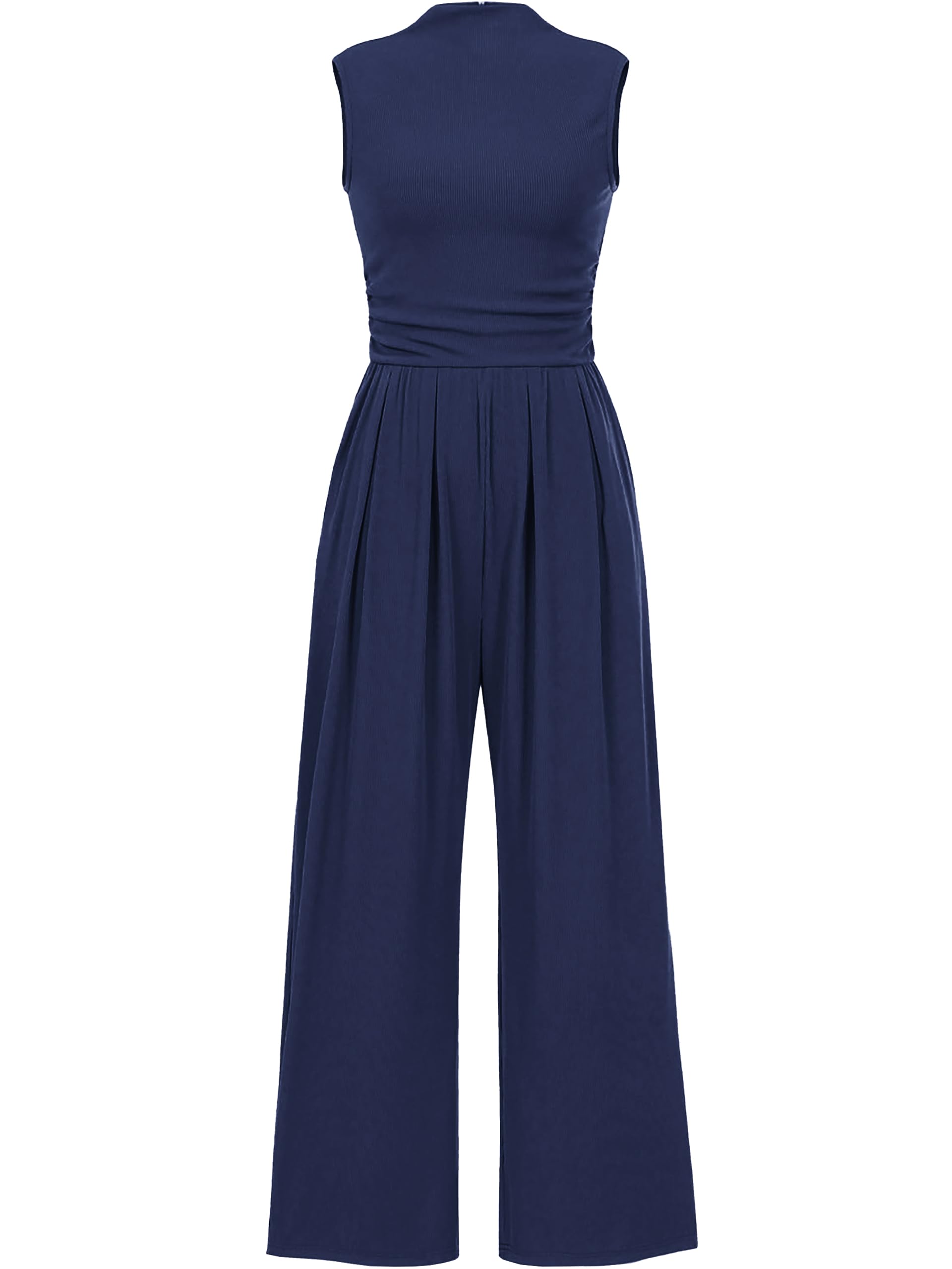 - Simple and Elegant: Solid color one-piece jumpsuits are designed with a mock neck, adding an elegant touch. Wide leg design effectively modifies the leg shape and body proportions. The sleeveless style is easy to wear in layers or alone in warm weather.