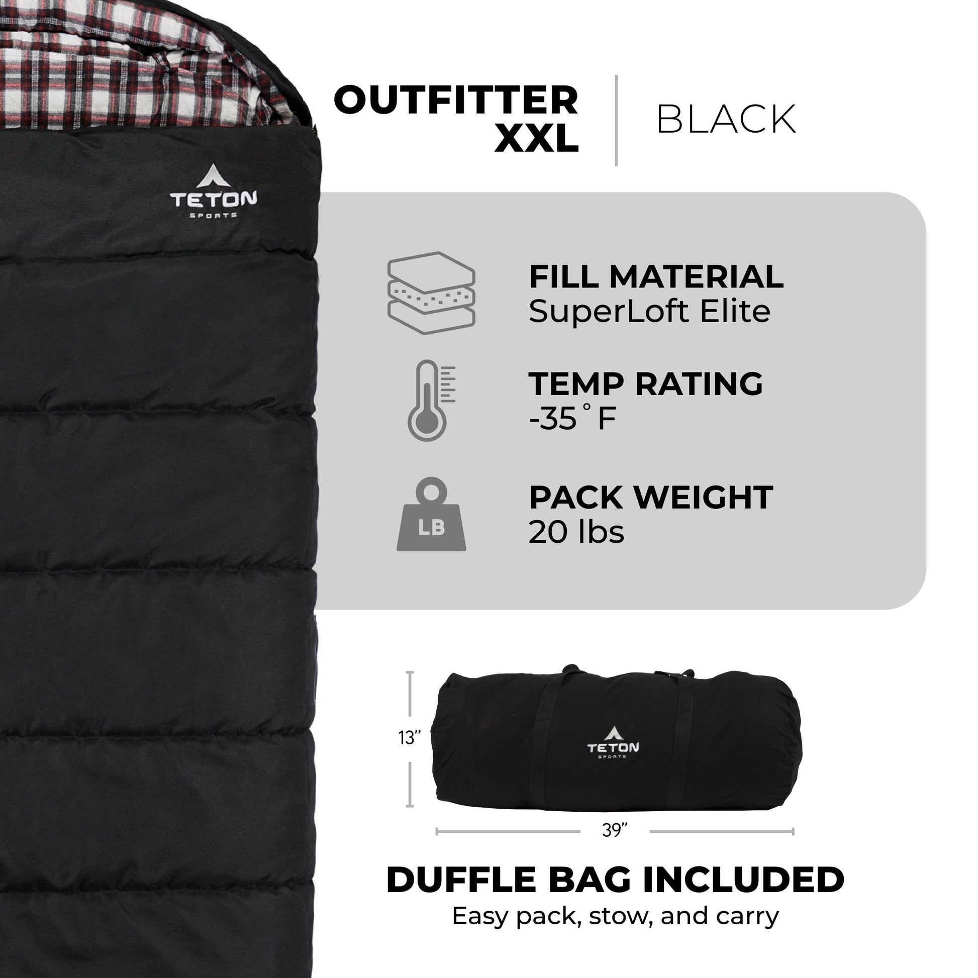 - TETON TOUGH: Our tough canvas shell is built to last a lifetime. Enjoy your day knowing you have a big warm sleeping bag to come back to.