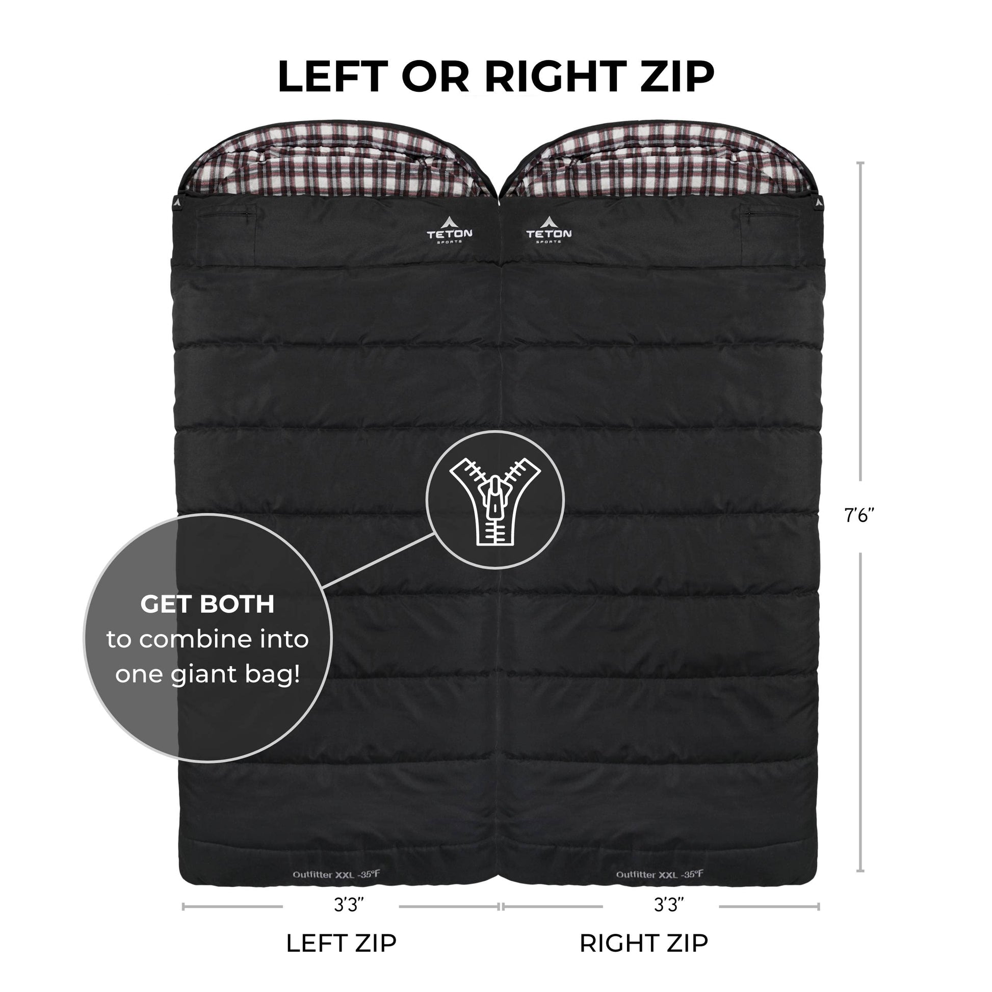 XXL Long Sleeping Bag (7'6"), Teton Fahrenheit: -35ºF rated
