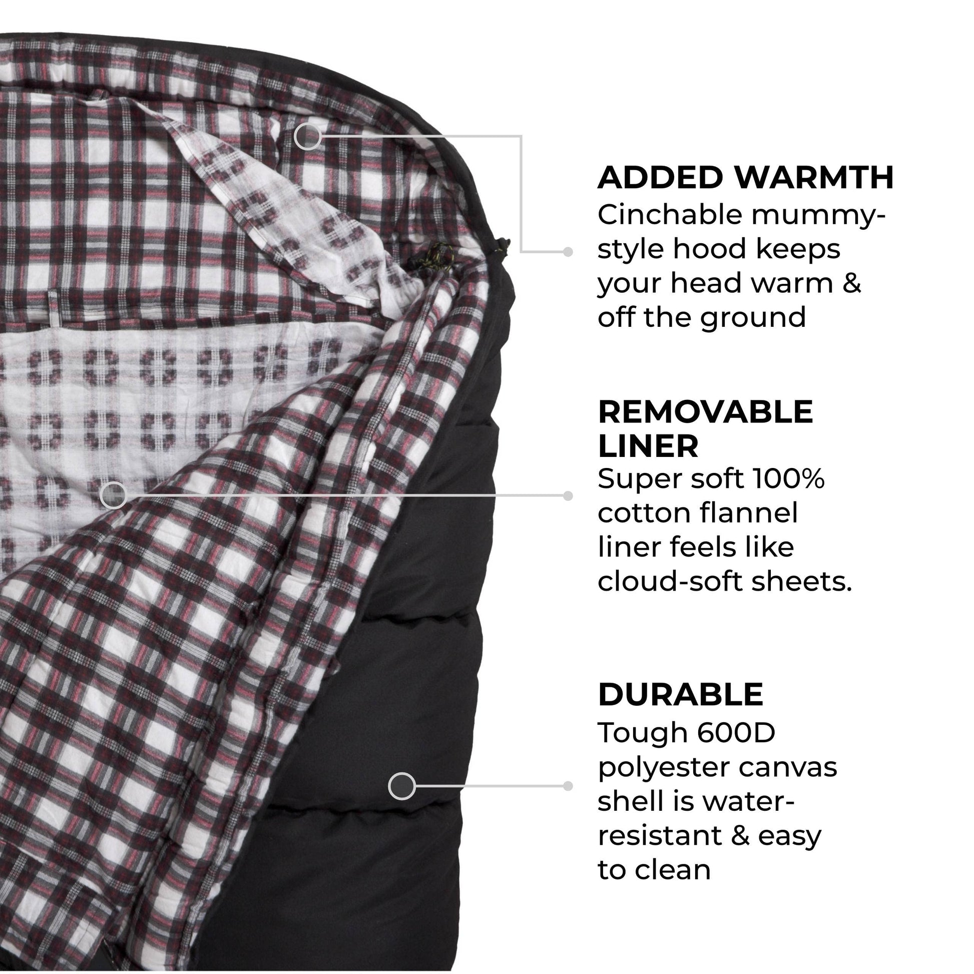 - TOUGH, DURABLE SLEEPING BAG: Soft cotton flannel liner and rugged, water-resistant canvas shell will stand up to years of rigorous adventures
